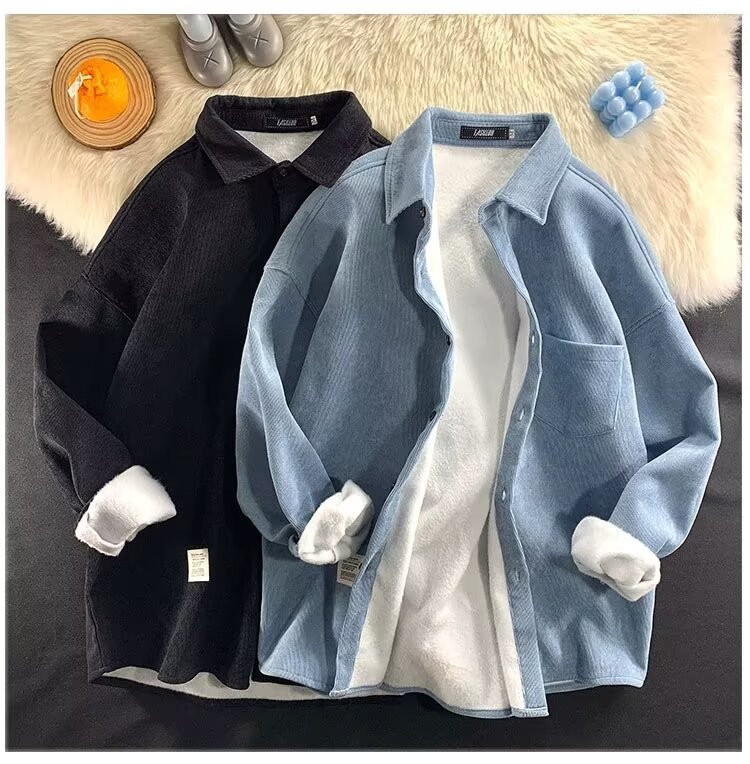 가을과 겨울 코듀로이 셔츠 남자 긴팔 한국 하이 엔드 캐주얼 재킷 잘 생긴 따뜻한 기모 셔츠스토어 가기