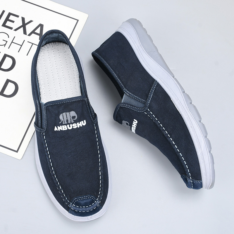 올드 베이징 새로운 남성 캔버스 신발 작업 신발 게으른 슬립 온 신발 순수 코튼 편안한 스포츠 및 남성용 캐주얼 신발스토어 가기