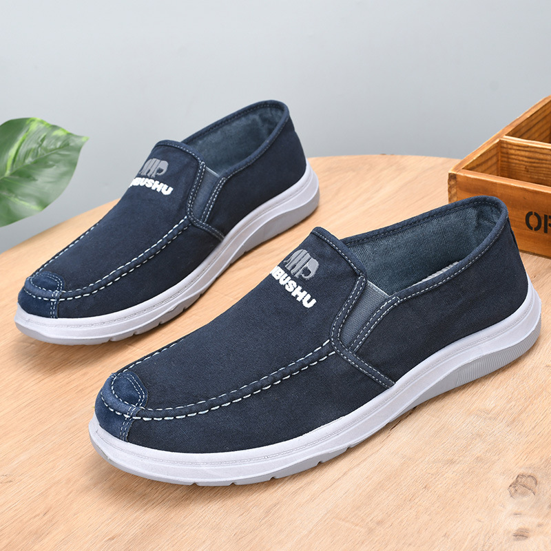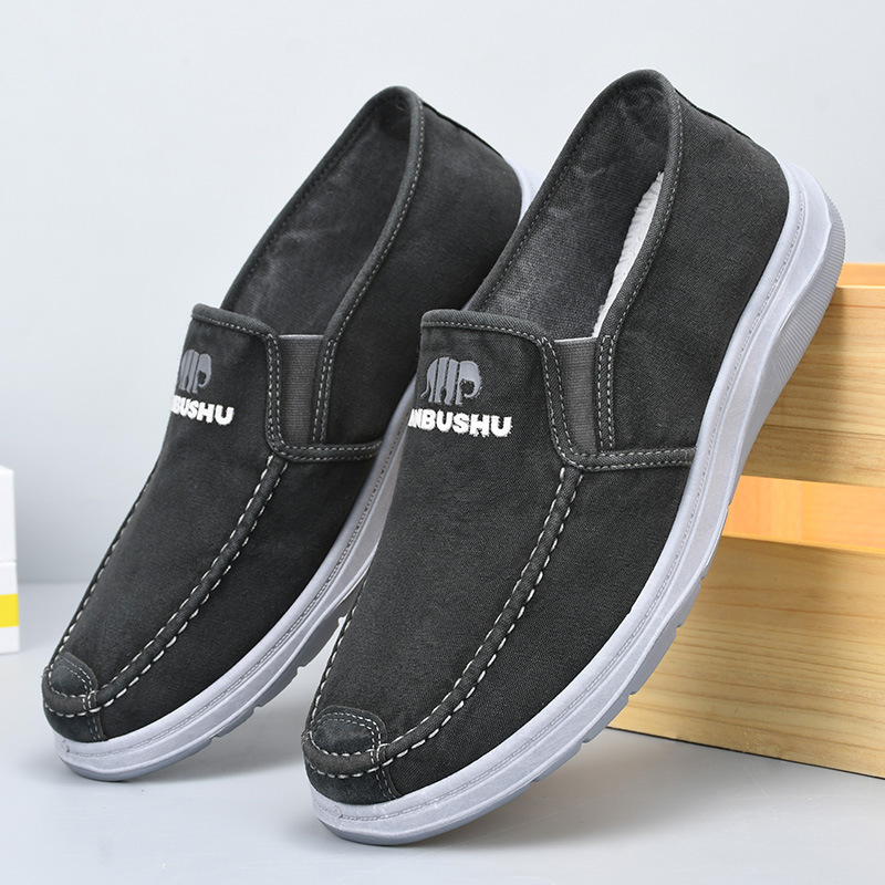 올드 베이징 새로운 남성 캔버스 신발 작업 신발 게으른 슬립 온 신발 순수 코튼 편안한 스포츠 및 남성용 캐주얼 신발