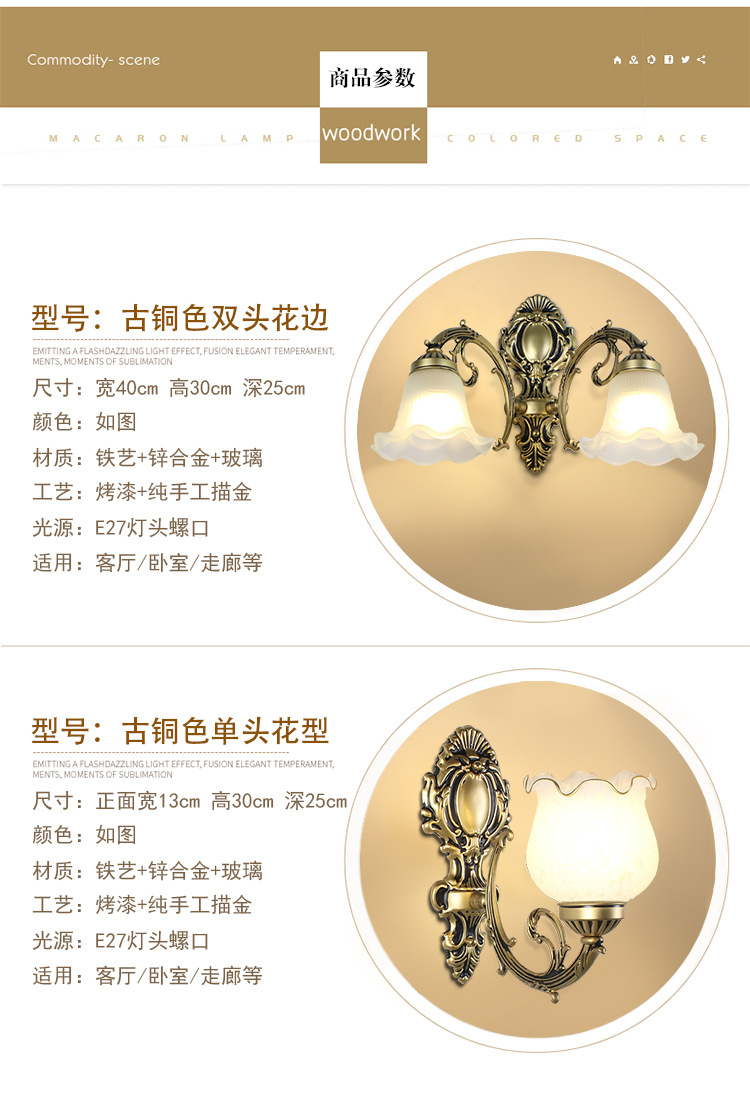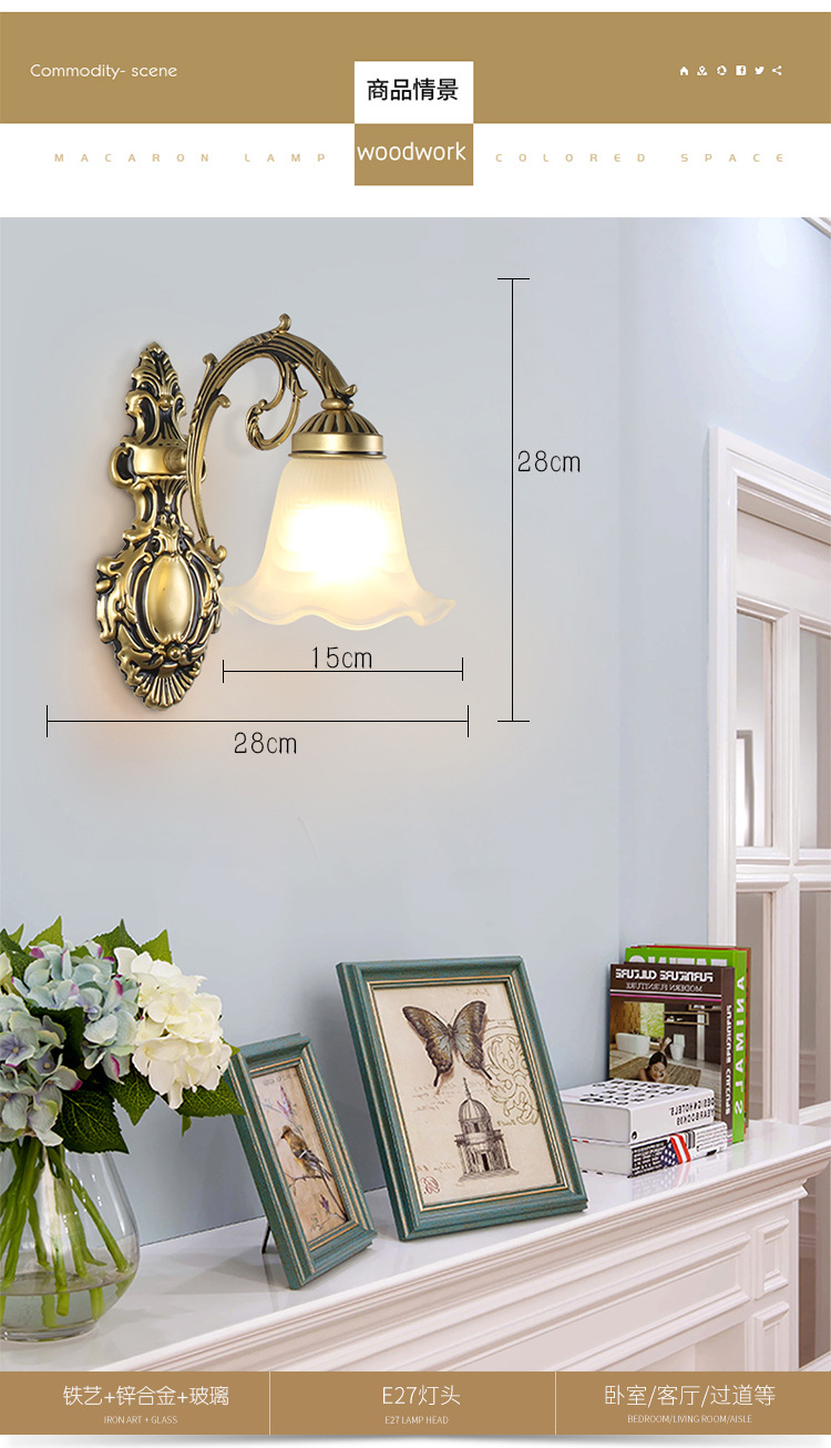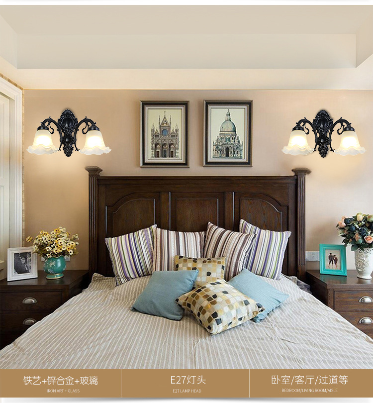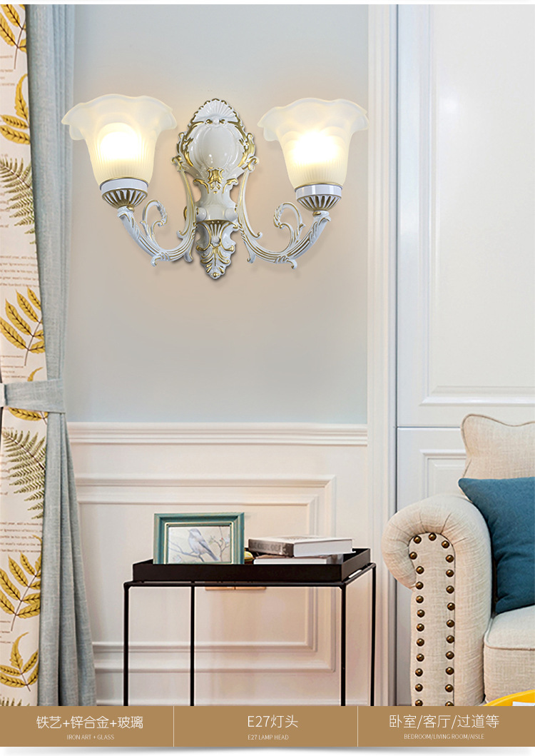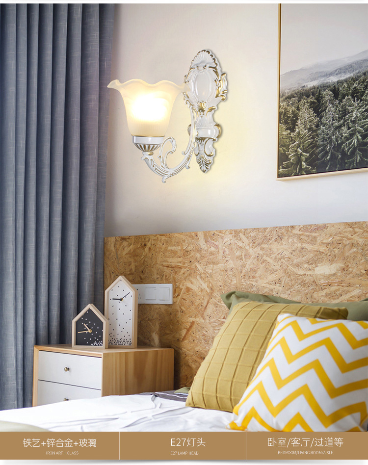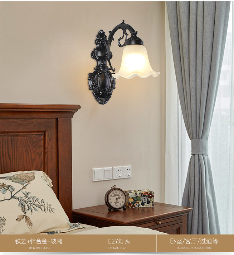 벽 램프 침대 옆 램프 새로운 침실 램프 싱글 헤드 거실 TV 배경 벽 유럽 복고풍 간단한 복도 벽 램프스토어 가기