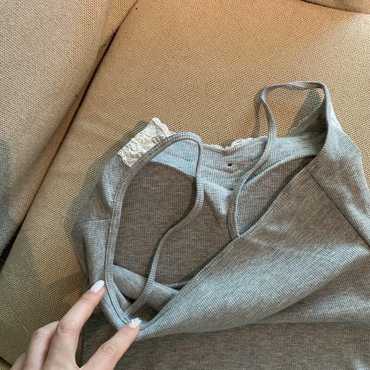 순수한 욕망 레이스 그레이 카미 솔 여성 벨트 가슴 패드 내부 착용 외부 착용 짧은 슬림 핏 디자인 센스 니쉬 여성
