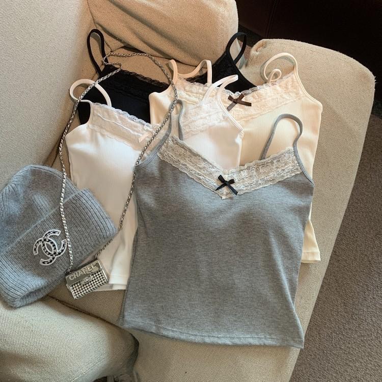 순수한 욕망 레이스 그레이 카미 솔 여성 벨트 가슴 패드 내부 착용 외부 착용 짧은 슬림 핏 디자인 센스 니쉬 여성스토어 가기