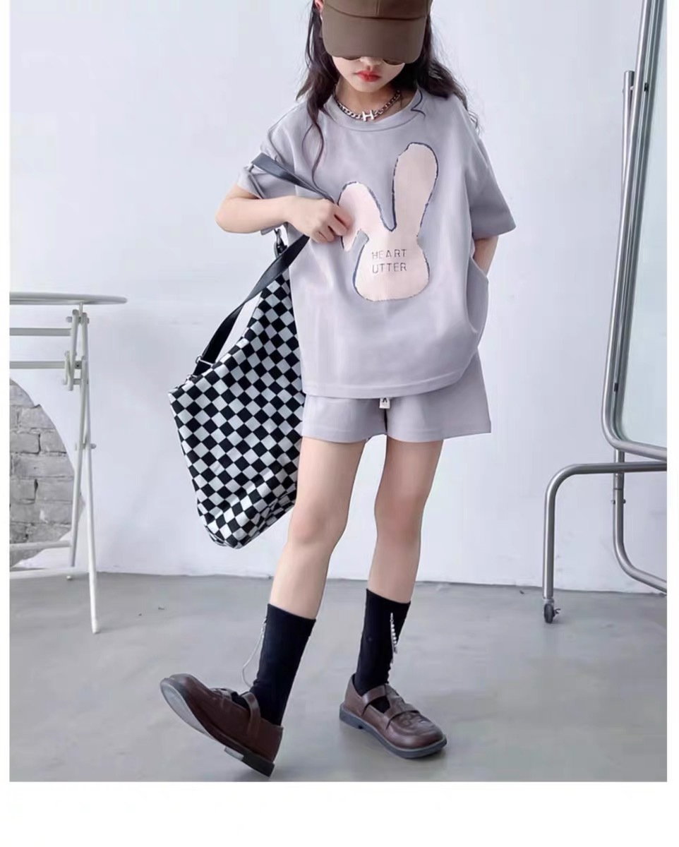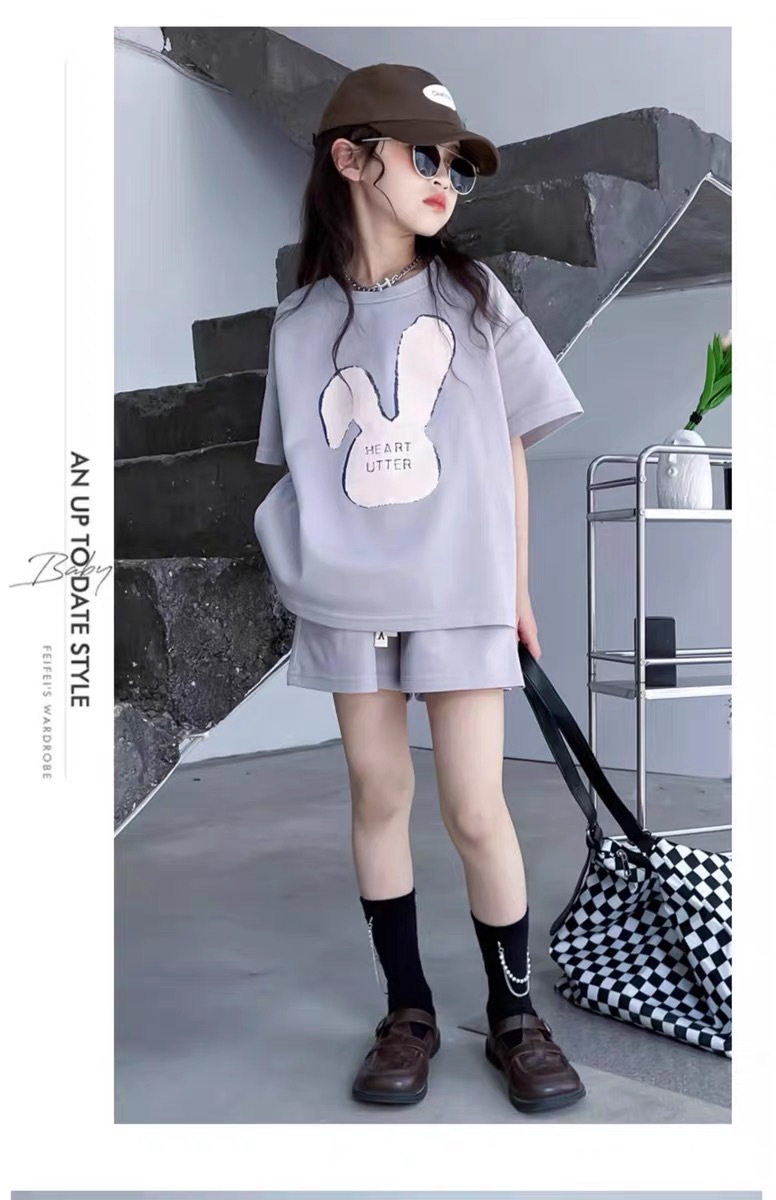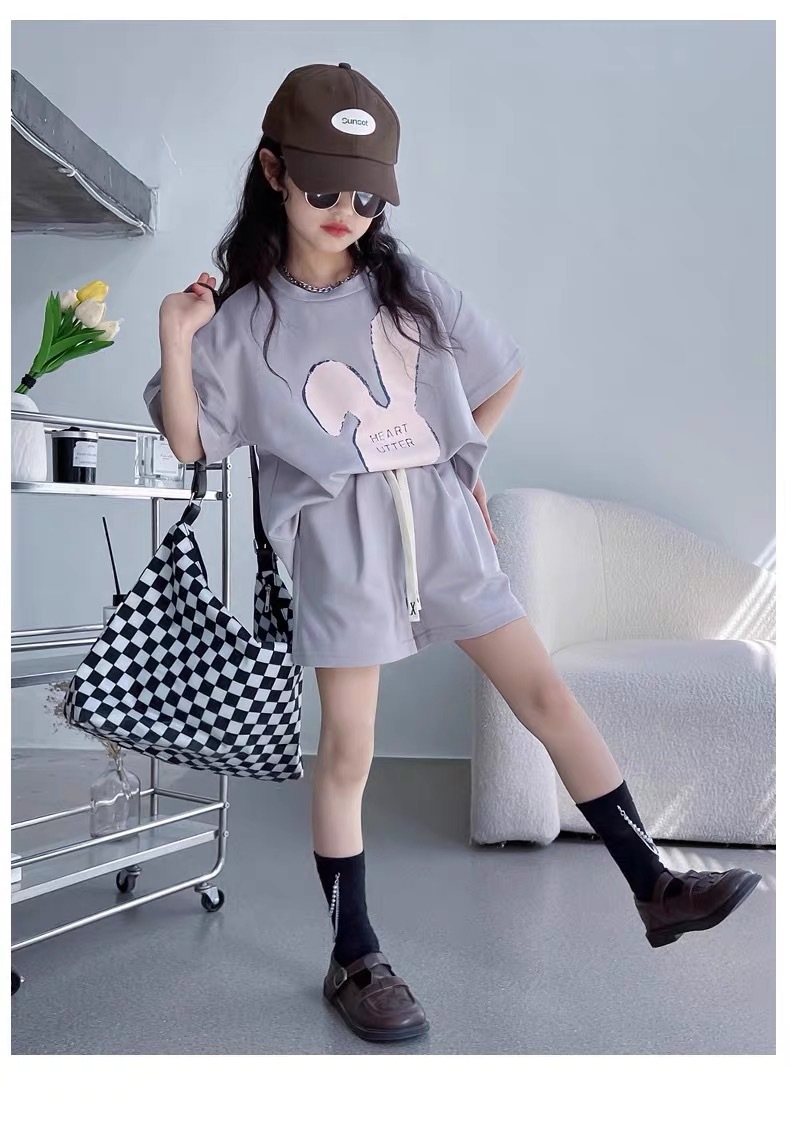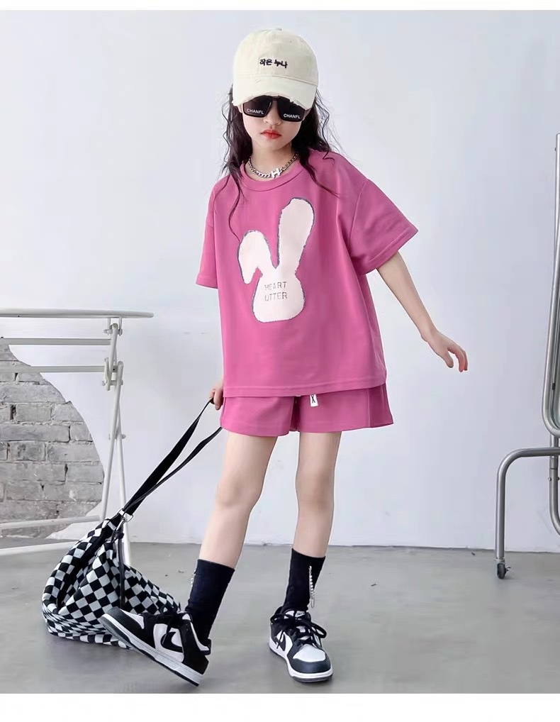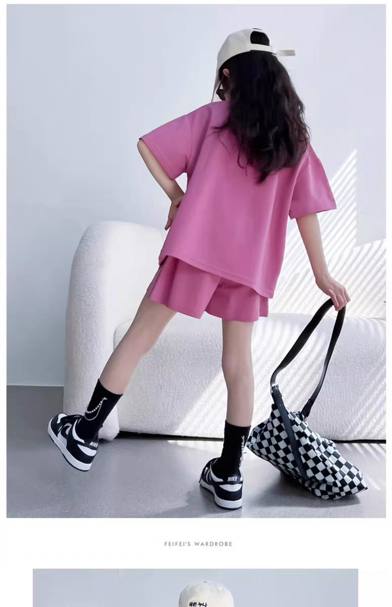 소녀 유행 두 조각 여름 서양 스타일 2024 새로운 소녀 여름 반팔 세트 어린이 캐주얼 여름 원피스스토어 가기