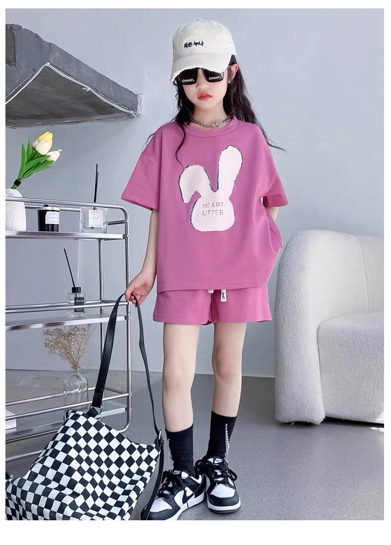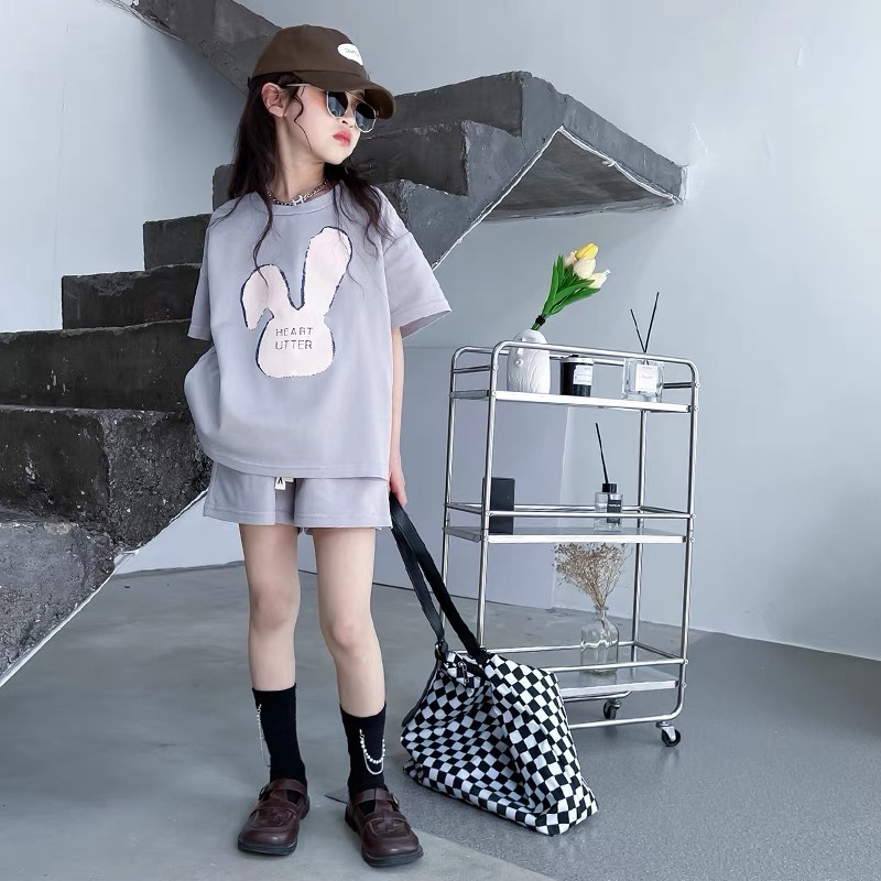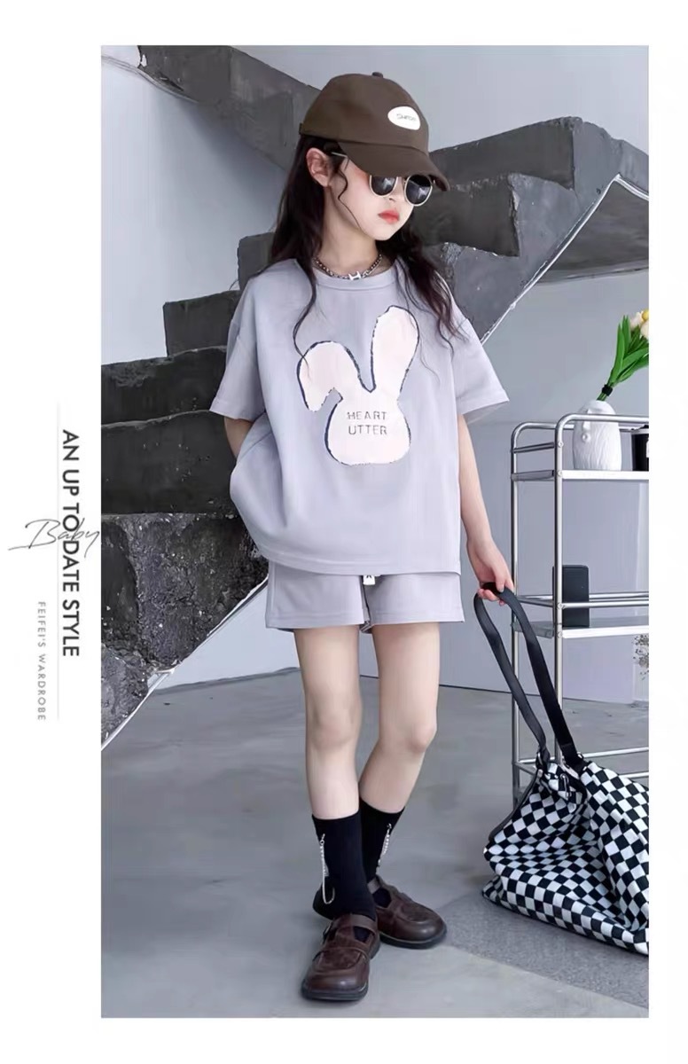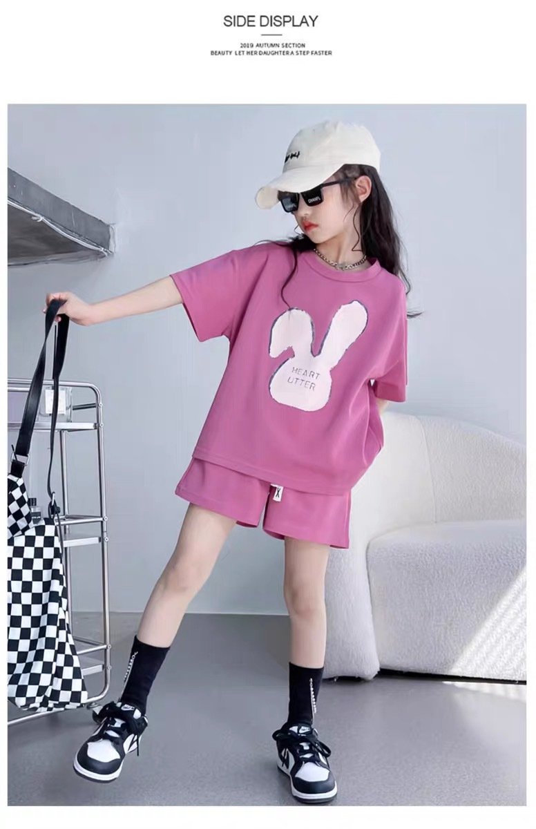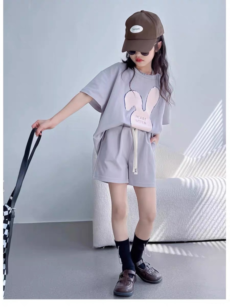 소녀 유행 두 조각 여름 서양 스타일 2024 새로운 소녀 여름 반팔 세트 어린이 캐주얼 여름 원피스스토어 가기