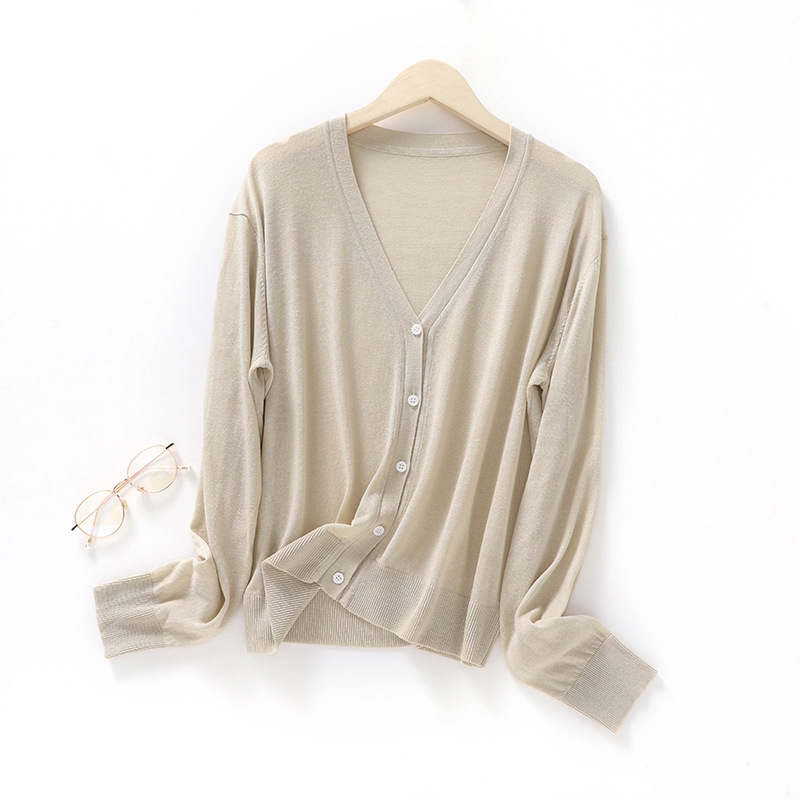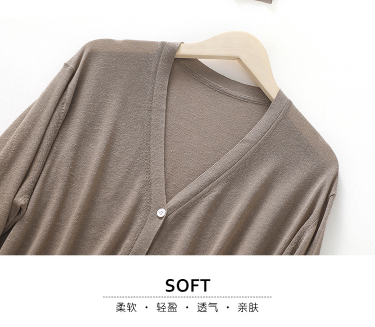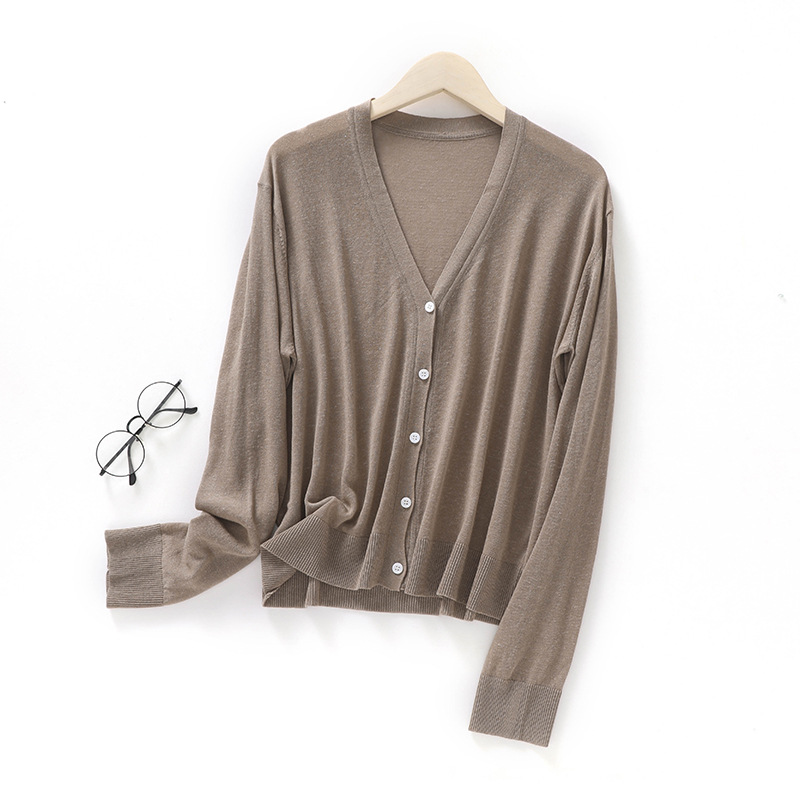 새로운 스타일 여름 에어컨 셔츠 절묘한 간단한 V-넥 리넨 느슨한 게으른 스타일 긴팔 썬 스크린 니트 카디건스토어 가기