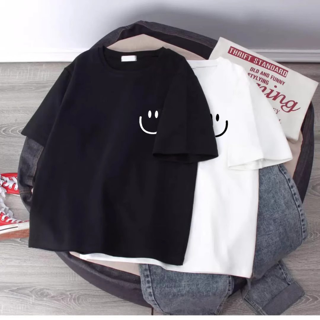 여름 소년과 소녀 백면 반팔 티셔츠 대형 어린이 간단한 어린이 느슨한 스마일리 아동복 기본 셔츠스토어 가기