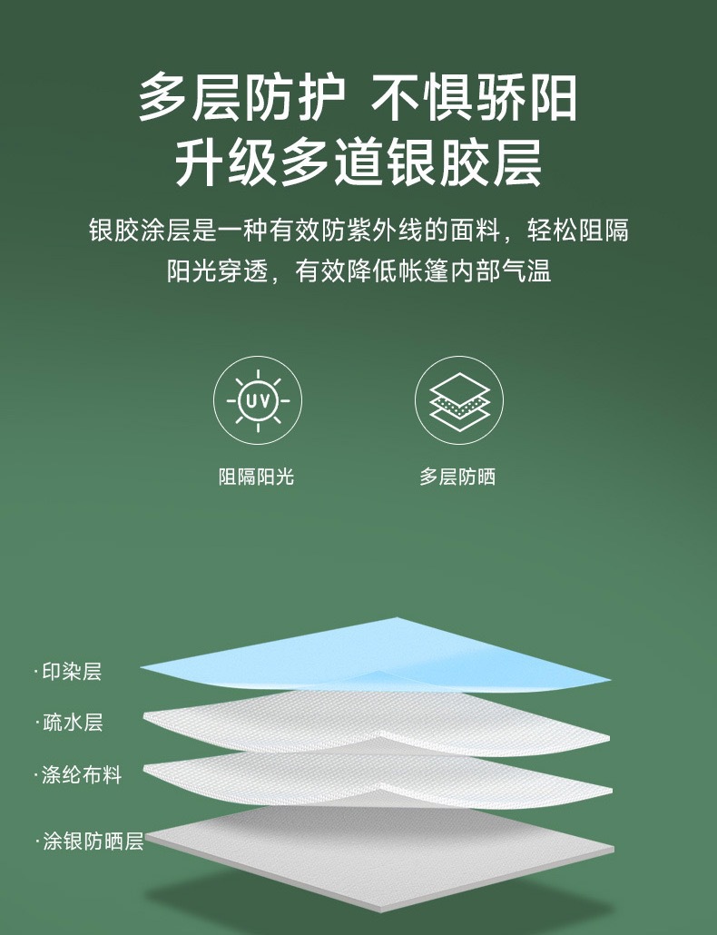 【产品材质】面料防水防晒涂银涤纶布,底账牛津布