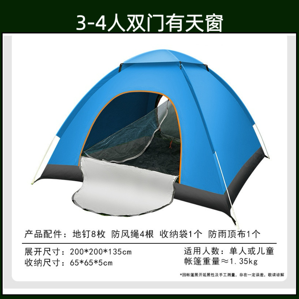 3-4人帐篷出厂配件 帐篷1 外袋1 地钉8 防风绳4
