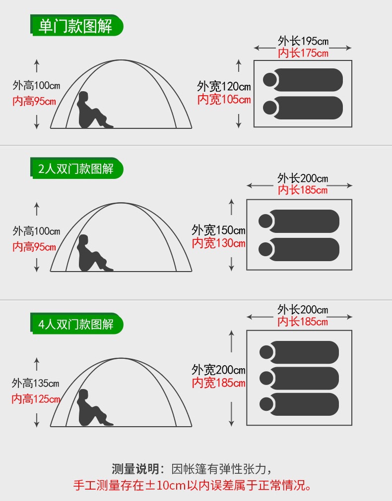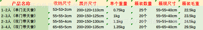 2-3人帐篷【出厂配件】帐篷1 外袋1 地钉8 防风绳4