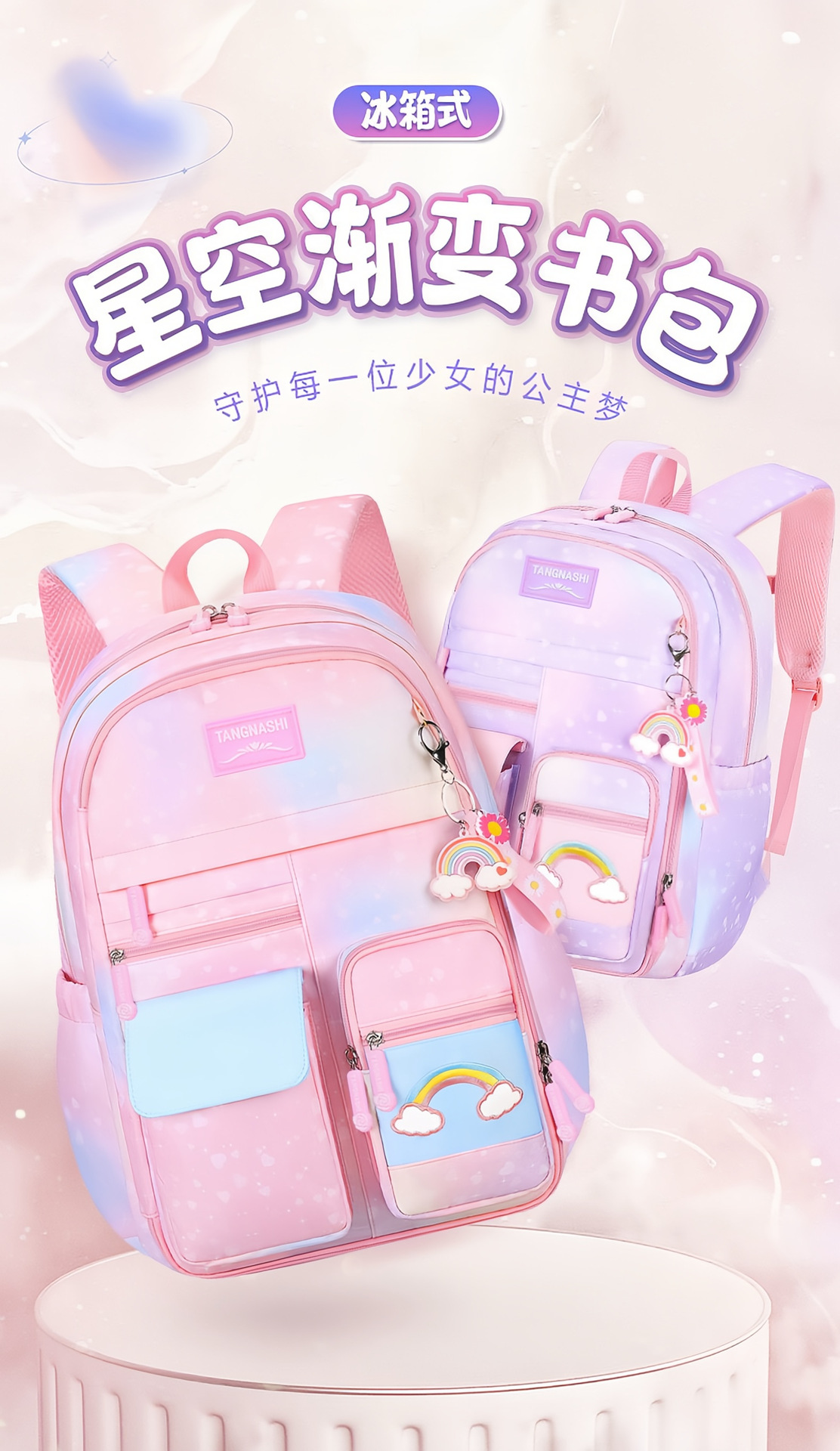 국경 학교 가방 1 학년 그라데이션 컬러 배낭 소녀 공주 어린이 초등학교 학교 가방 도매