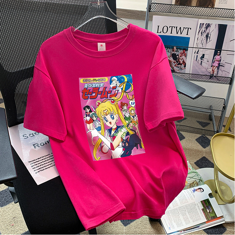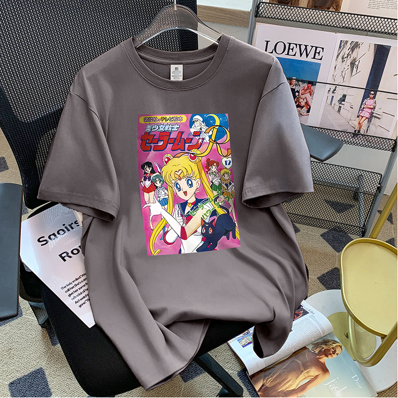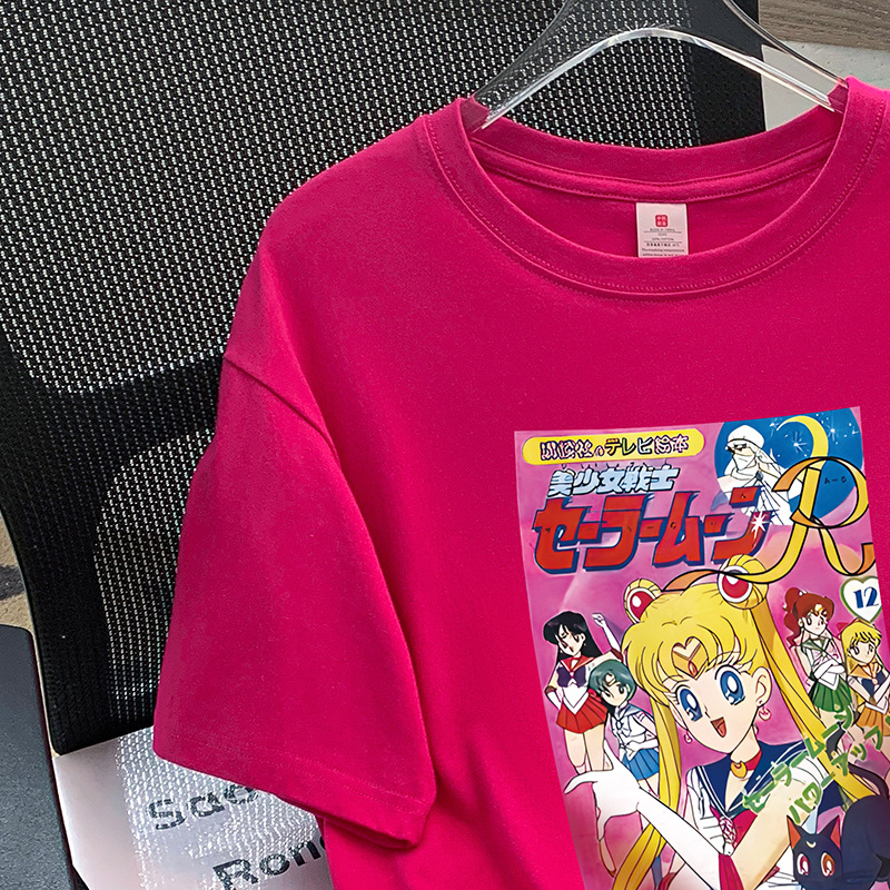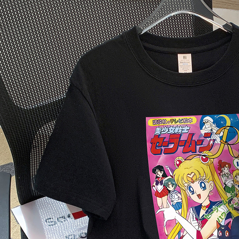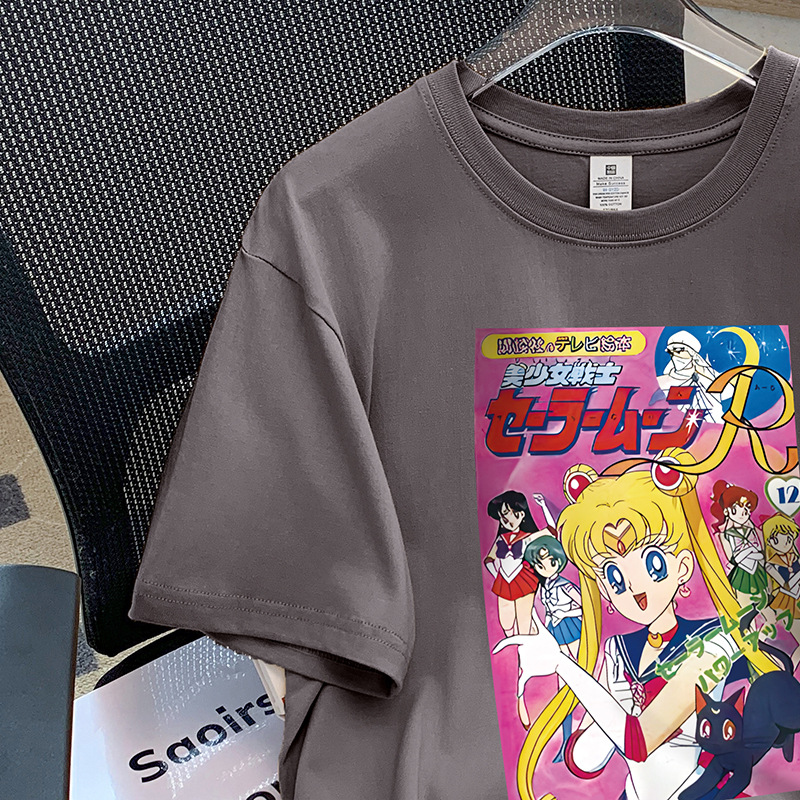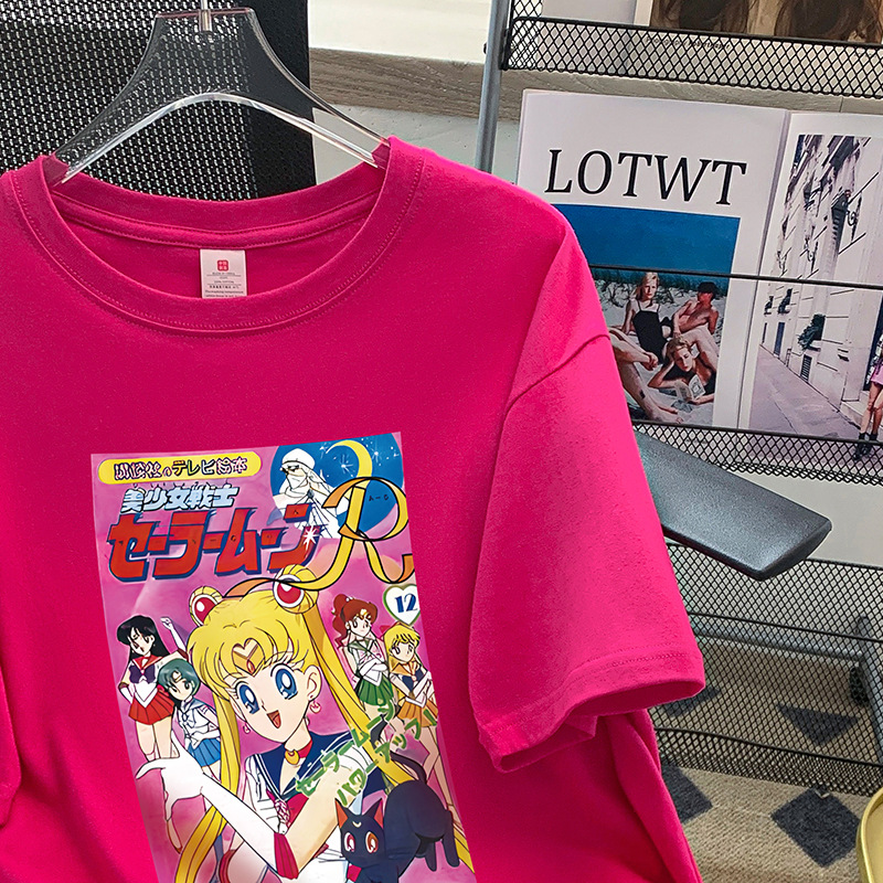 Ins 세련된 흰색 반팔 티셔츠 여성 여름 선원 달 만화 인쇄 디자인 틈새 느슨한 탑스토어 가기