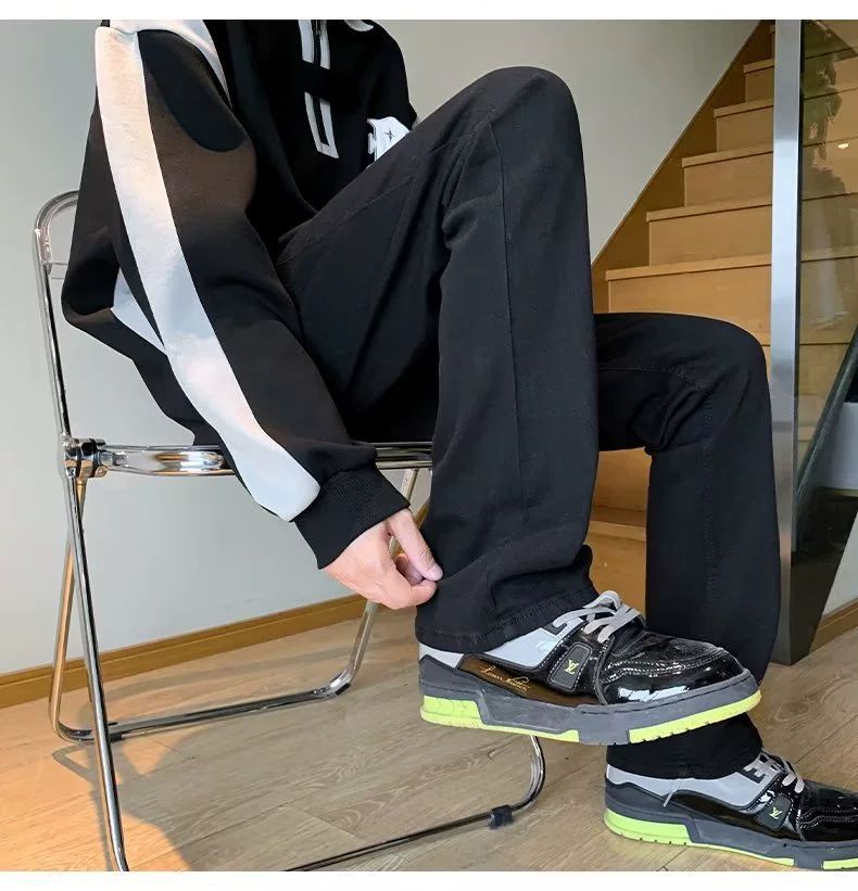순수 블랙 스트레치 슬림 핏 청바지 남성용 우수한 바지 미국 스타일 트렌디 브랜드 바이브 스트레이트 바지
