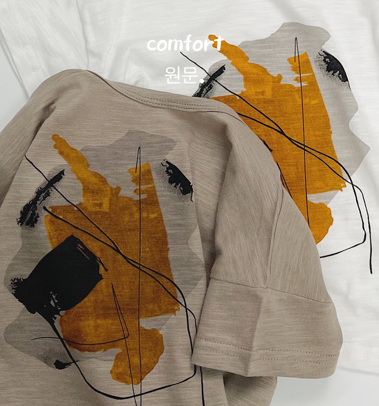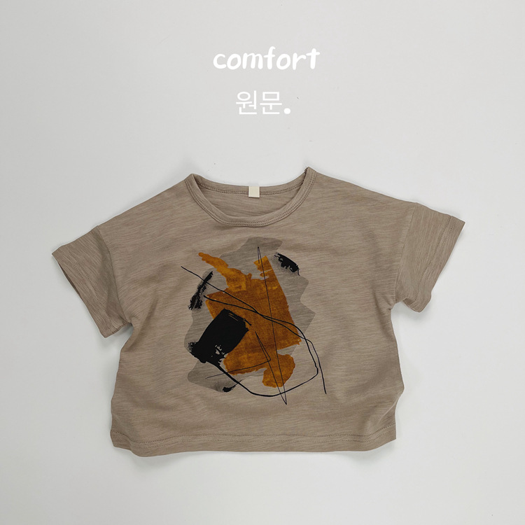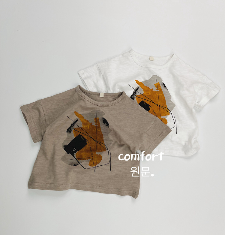 여름 어린이 서양식 추상 예술적 반팔 티셔츠 어린이 반소매 아기의 캐주얼 패셔너블 탑