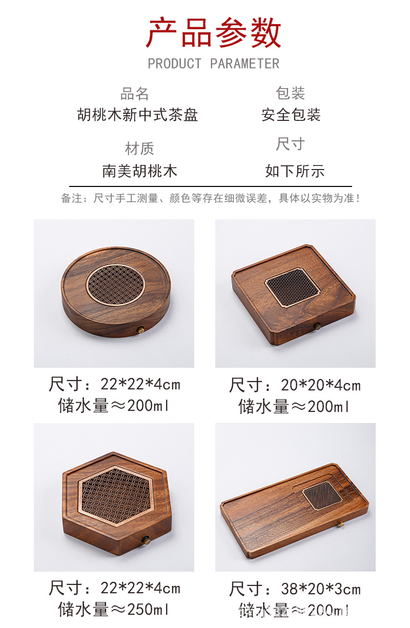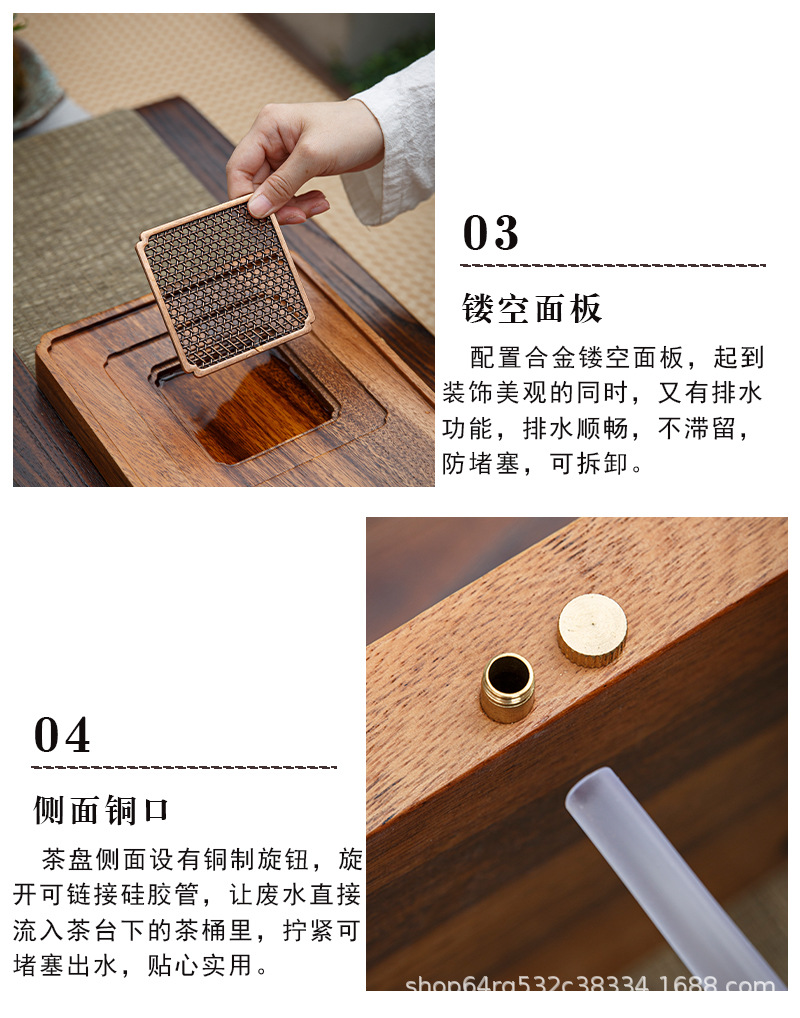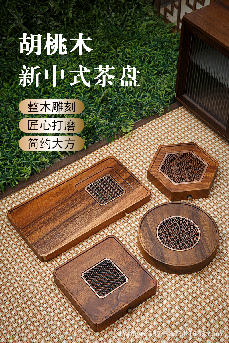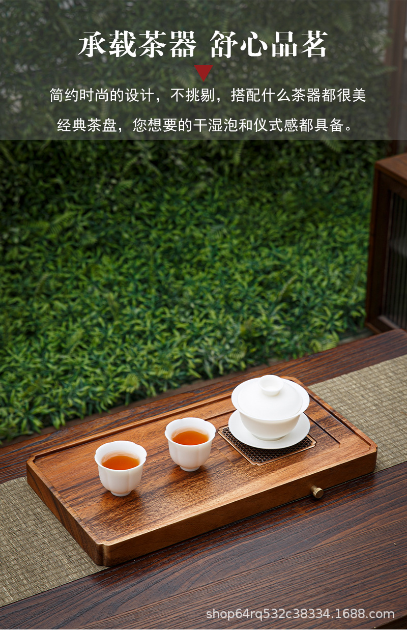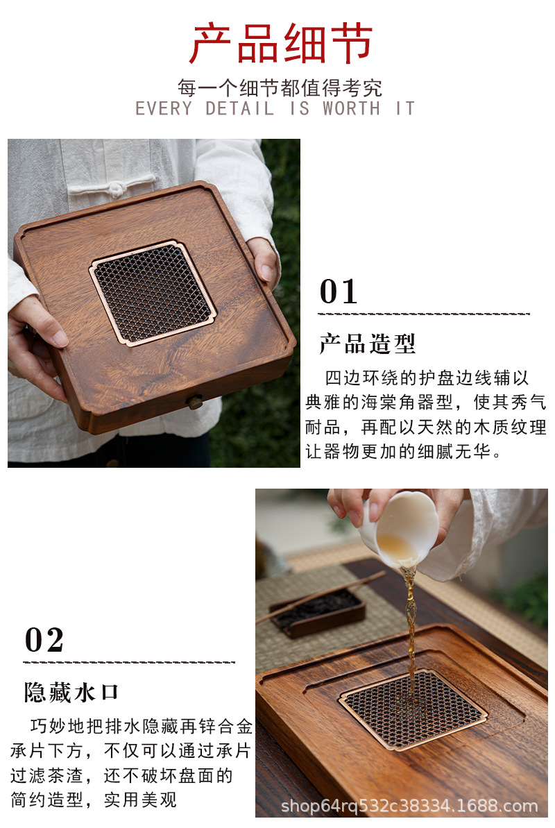 건식 거품 호두 나무 배수 단단한 나무 작은 차 트레이 작은 직사각형 차 세트 도매 가정용 주전자스토어 가기