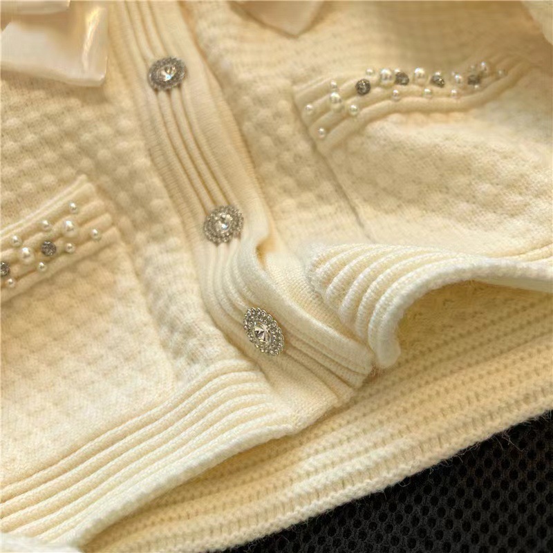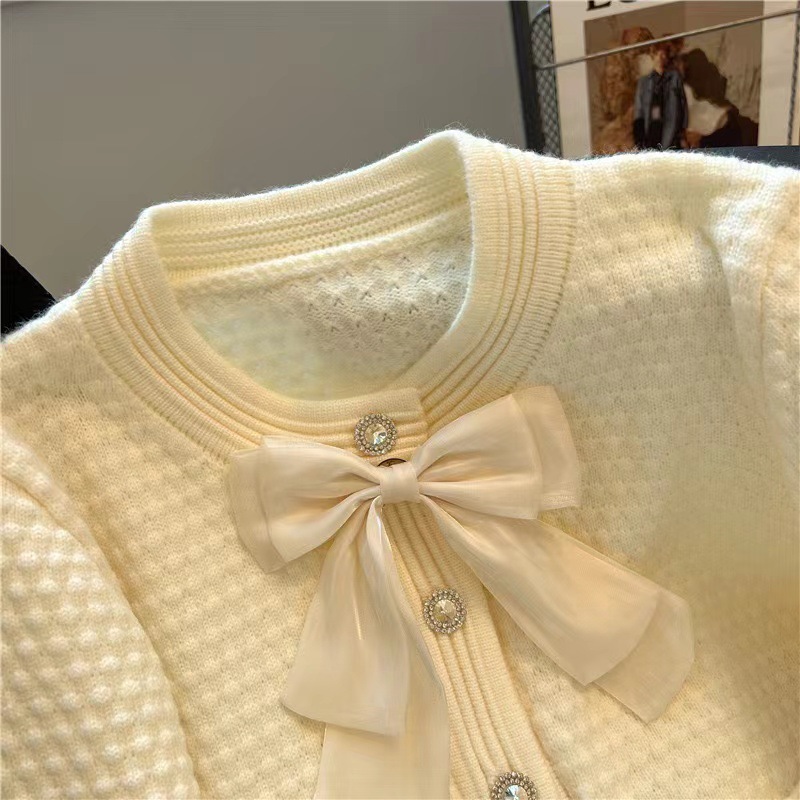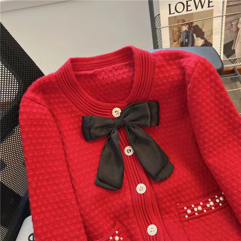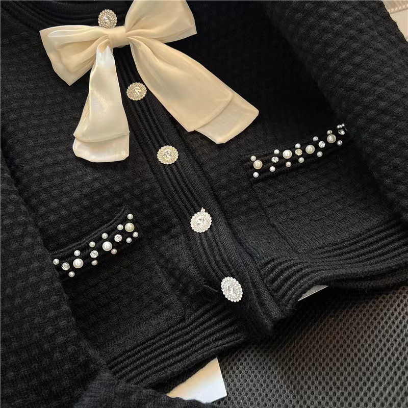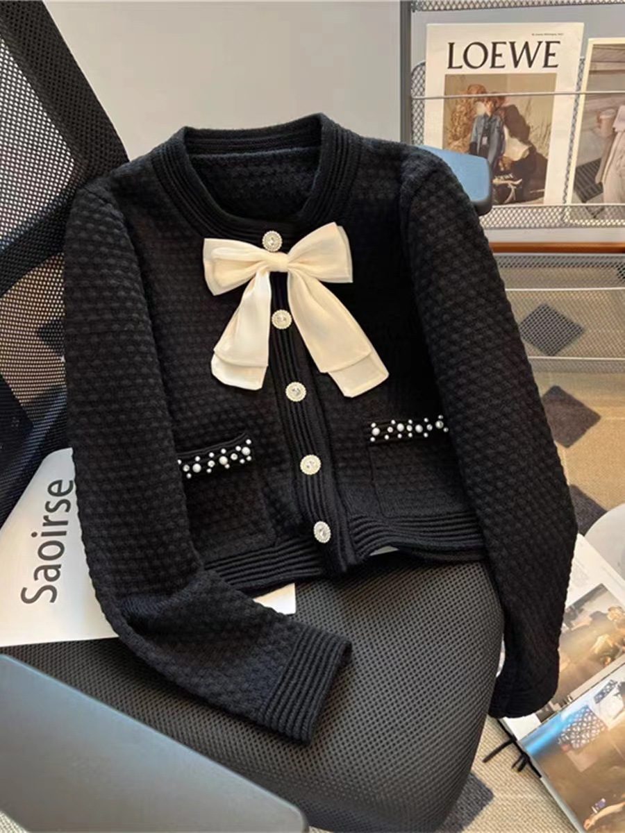프랑스 달콤하고 부드러운 샤넬 스타일 활 스웨터 카디건 여성용 라이트 럭셔리 패션 우아한 작은 니트 재킷