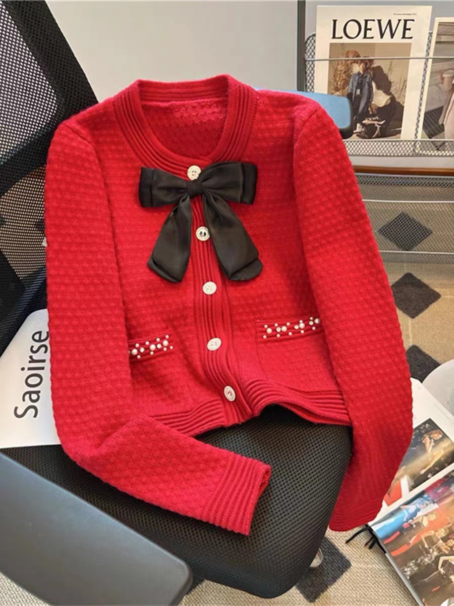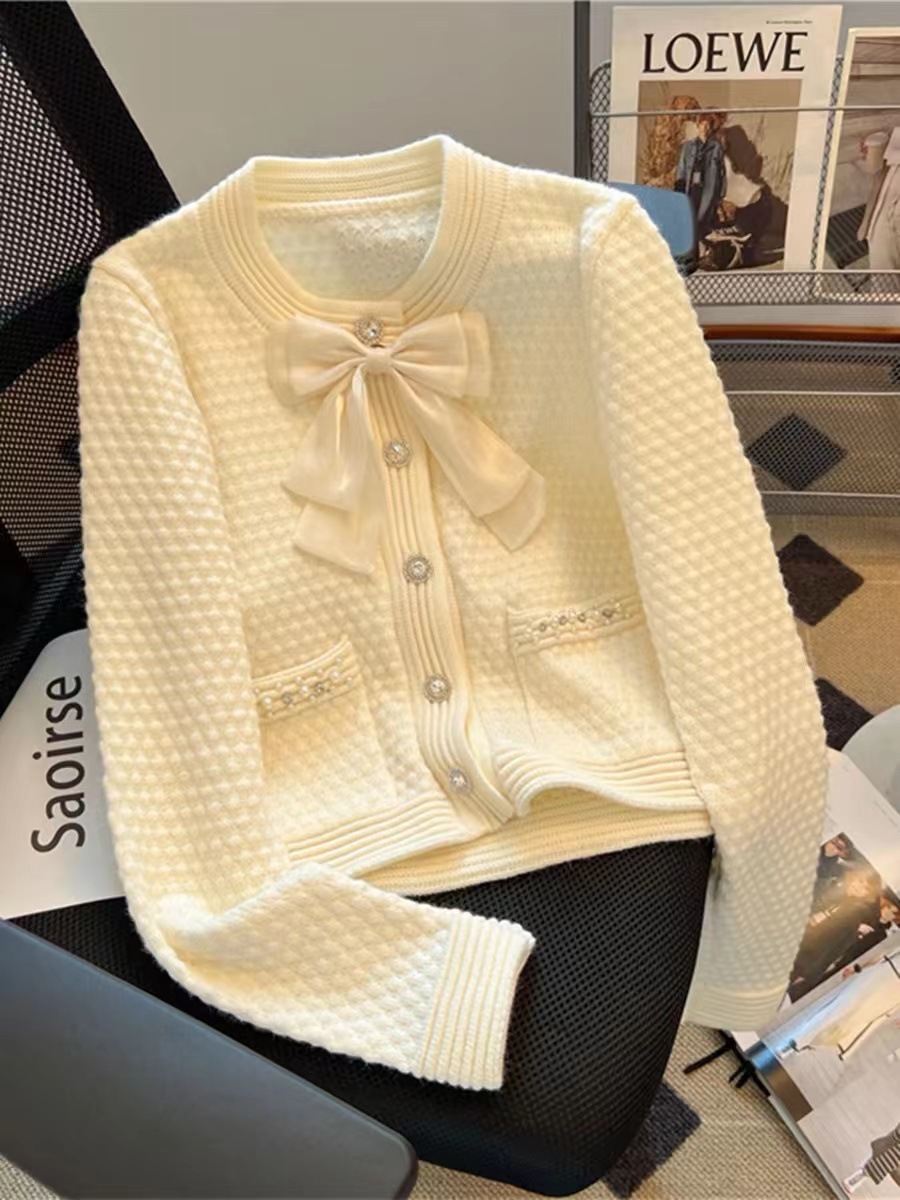 프랑스 달콤하고 부드러운 샤넬 스타일 활 스웨터 카디건 여성용 라이트 럭셔리 패션 우아한 작은 니트 재킷스토어 가기