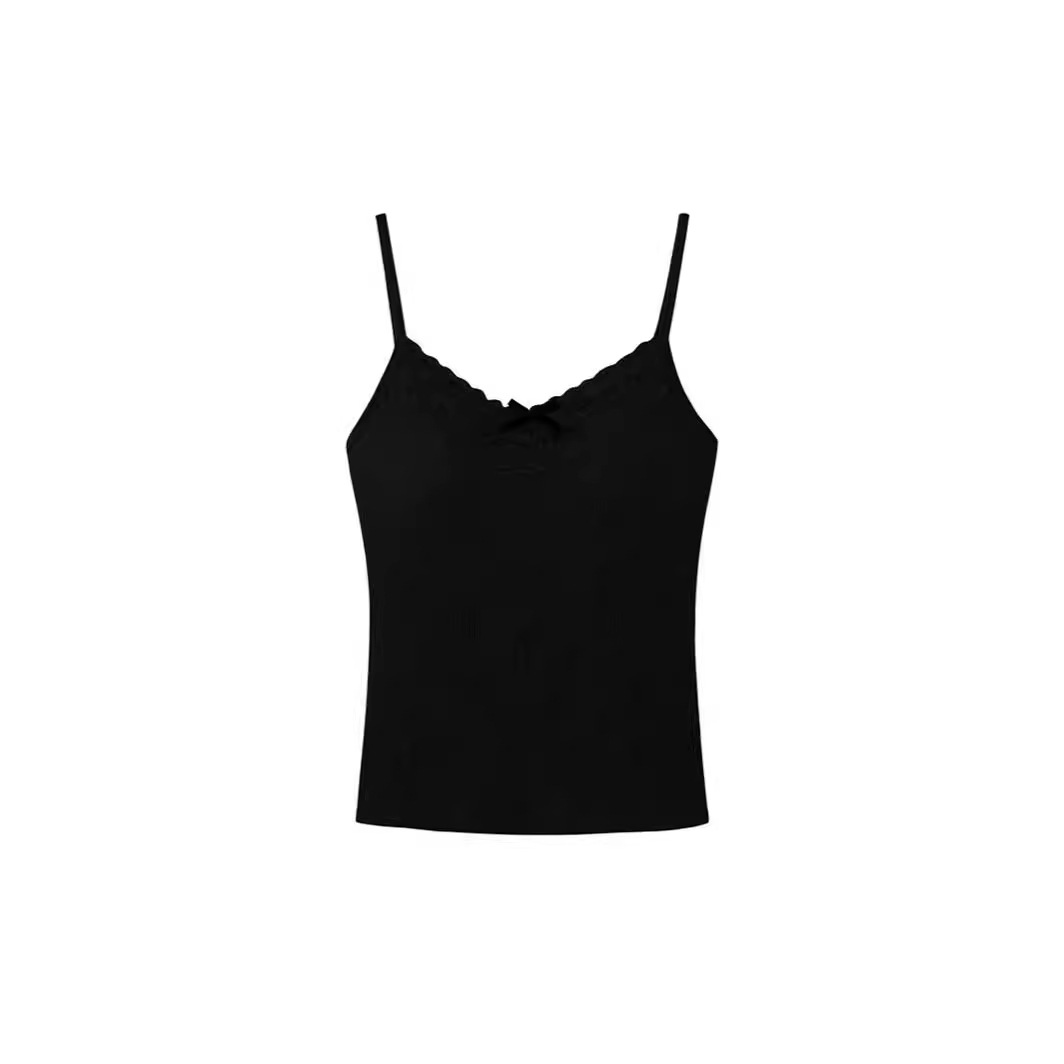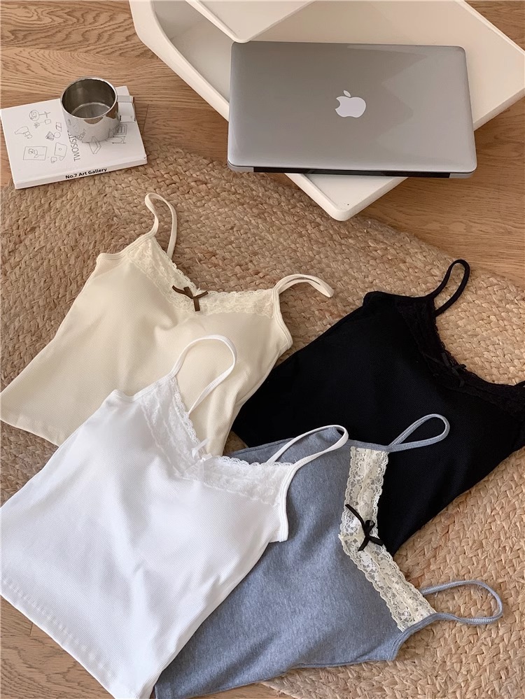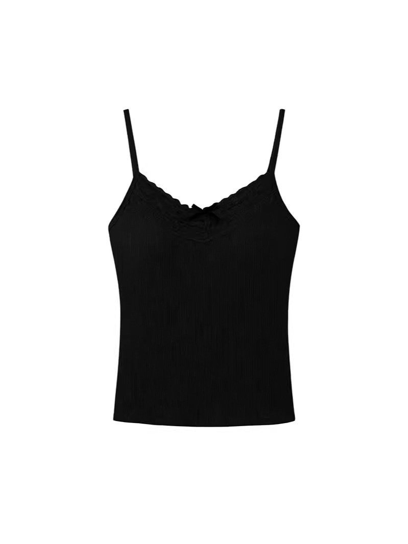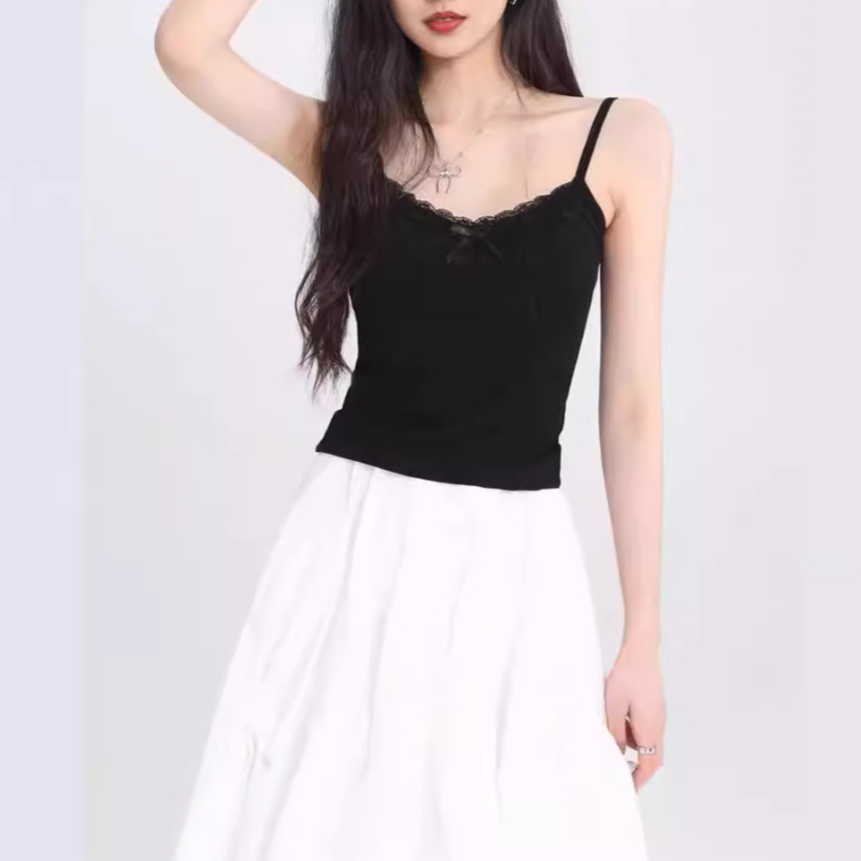 보우 레이스 블랙 작은 카미 솔 조끼 여성 여름 아우터 퓨어 프렌치 스타일베이스 탑 가슴 패드