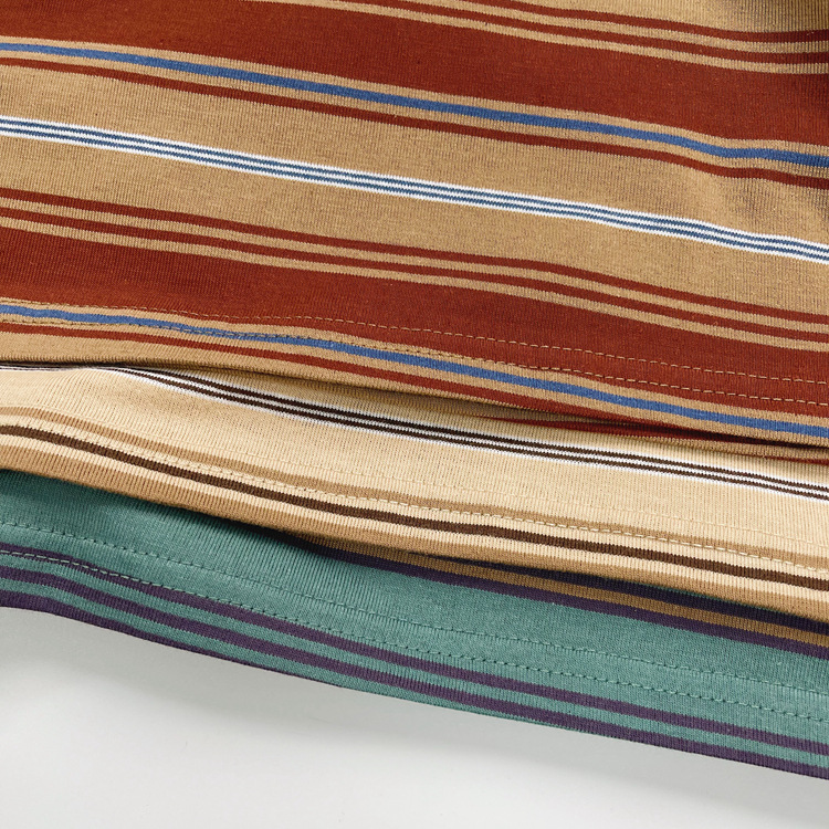 한국 스타일의 새로운 어린이 줄무늬 티셔츠 여름 원피스 모리 컬러 대비 반팔 상단 간단 라운드 넥 올 매치 티셔츠 소년 소녀 용스토어 가기
