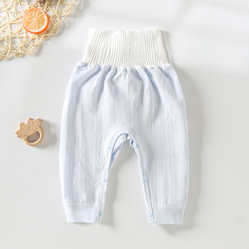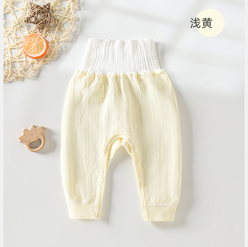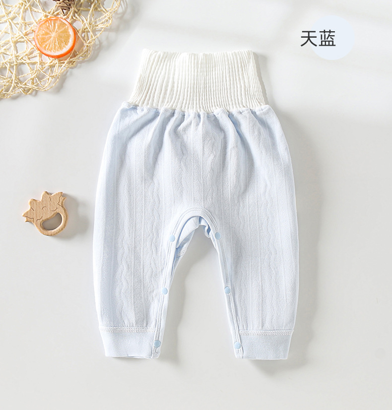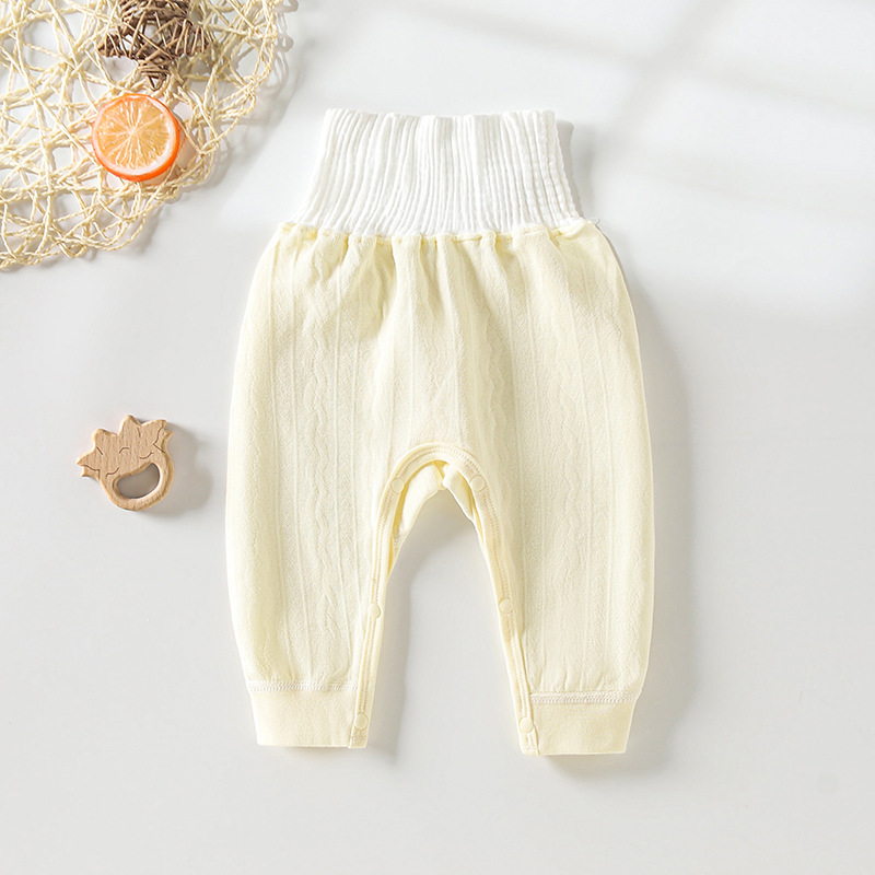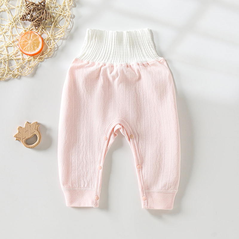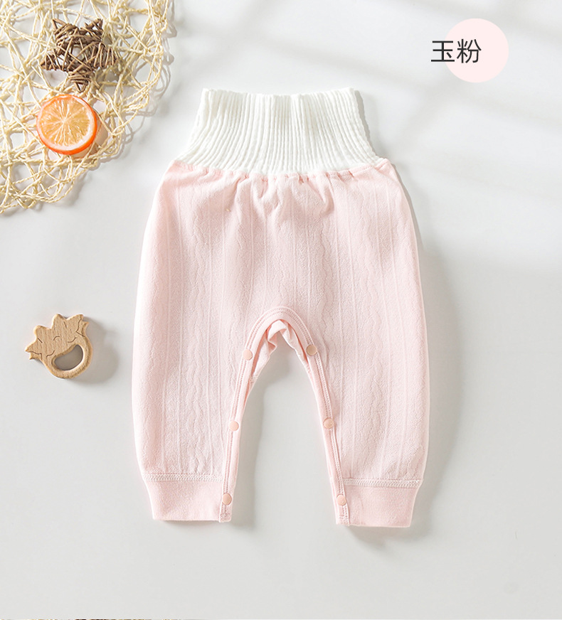 아기의 가을 바지 봄과 가을 클래스 높은 허리 배꼽 보호자 면 뼈없는 크로트 오픈 따뜻한 바지 신생아 아기 바지