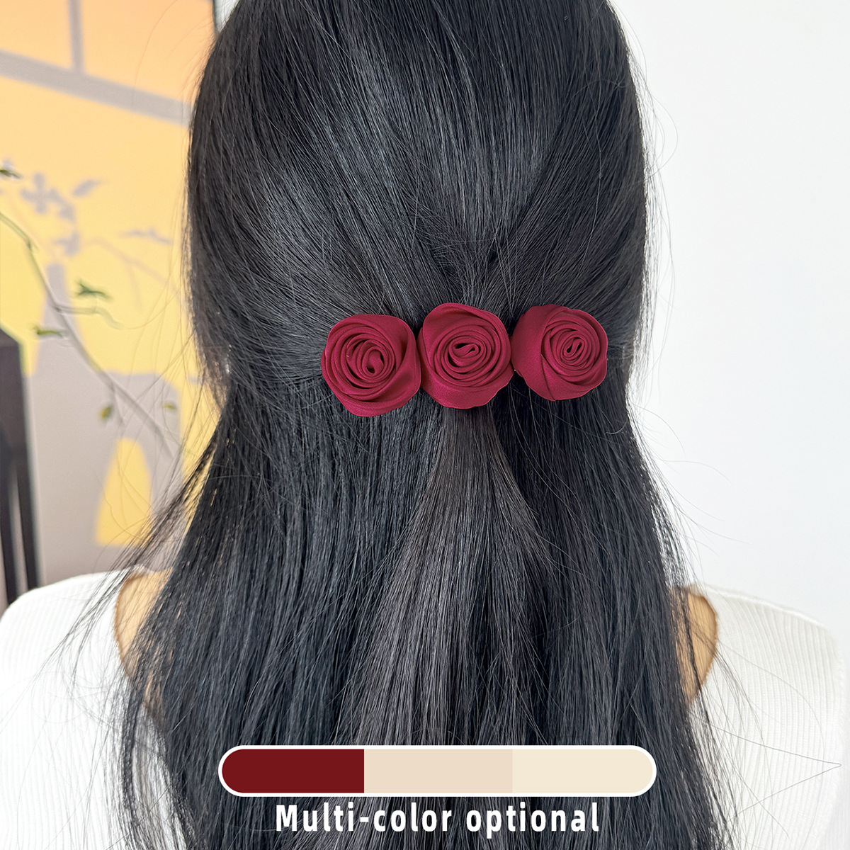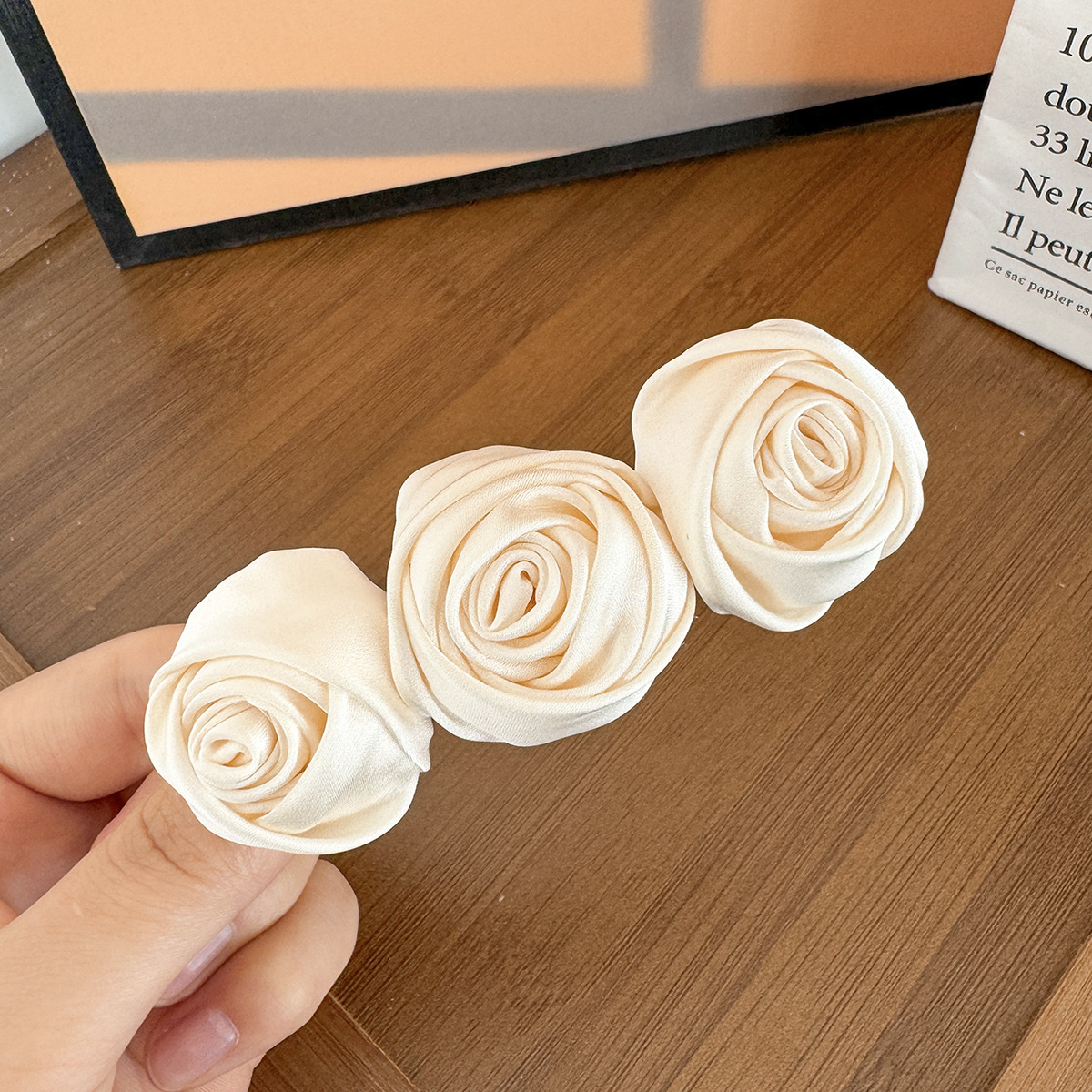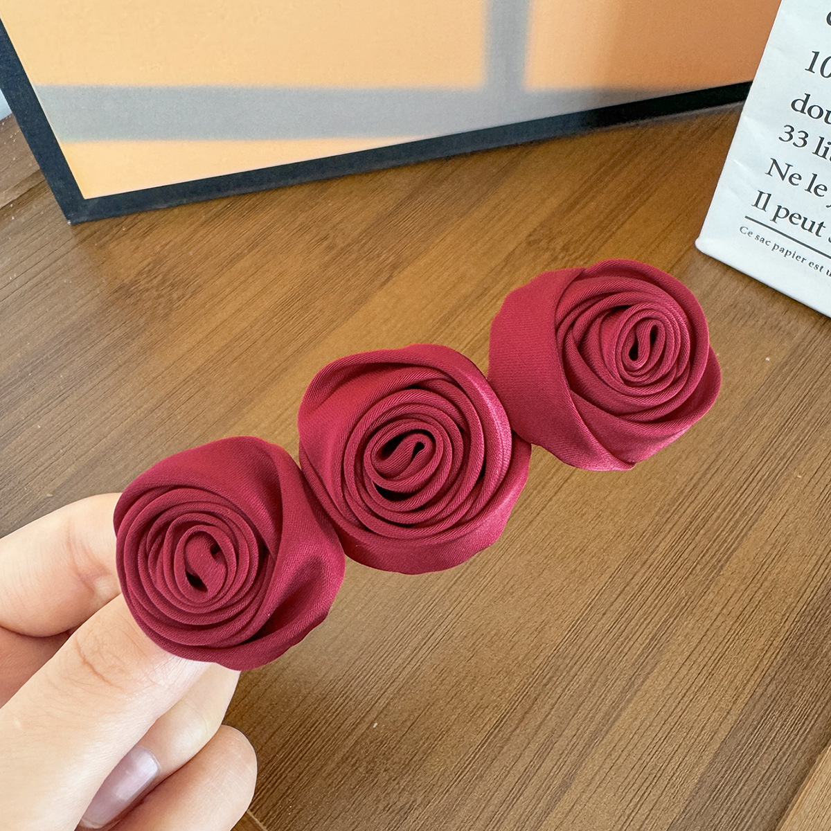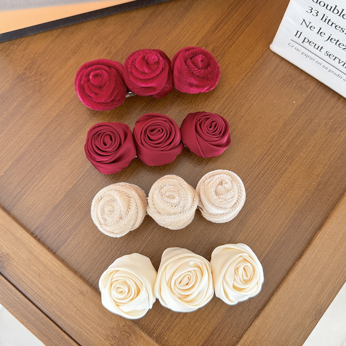 프랑스 레트로 새틴 로즈 헤어 클립 여성 슈퍼 페어리 우아한 올 매치 하이 엔드 헤드 스프링 클립 헤어 액세서리