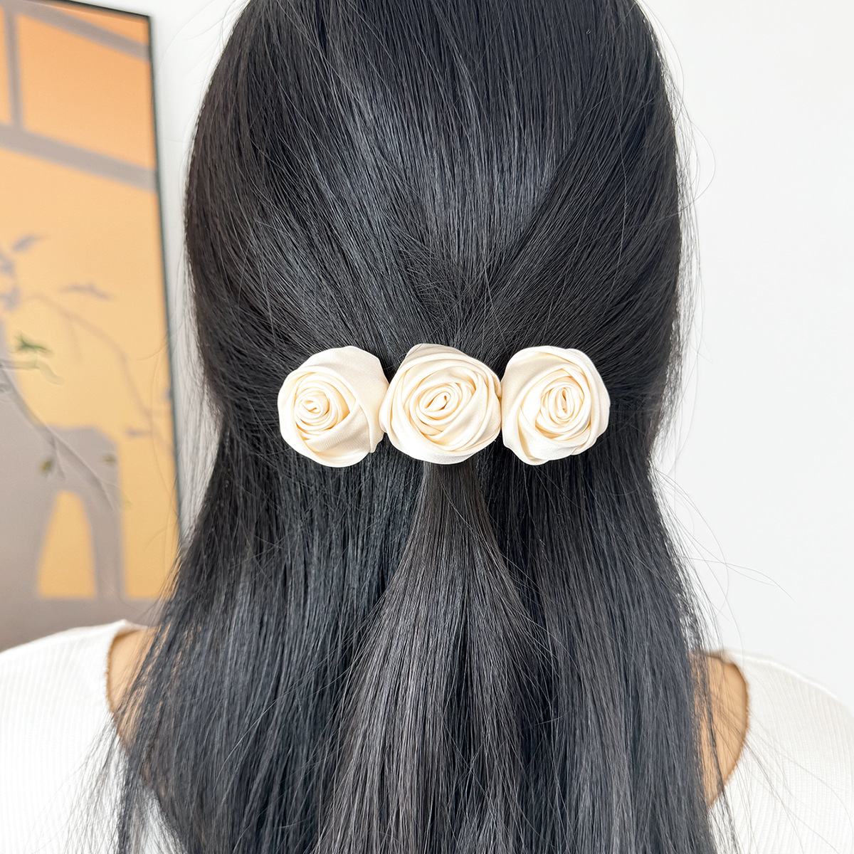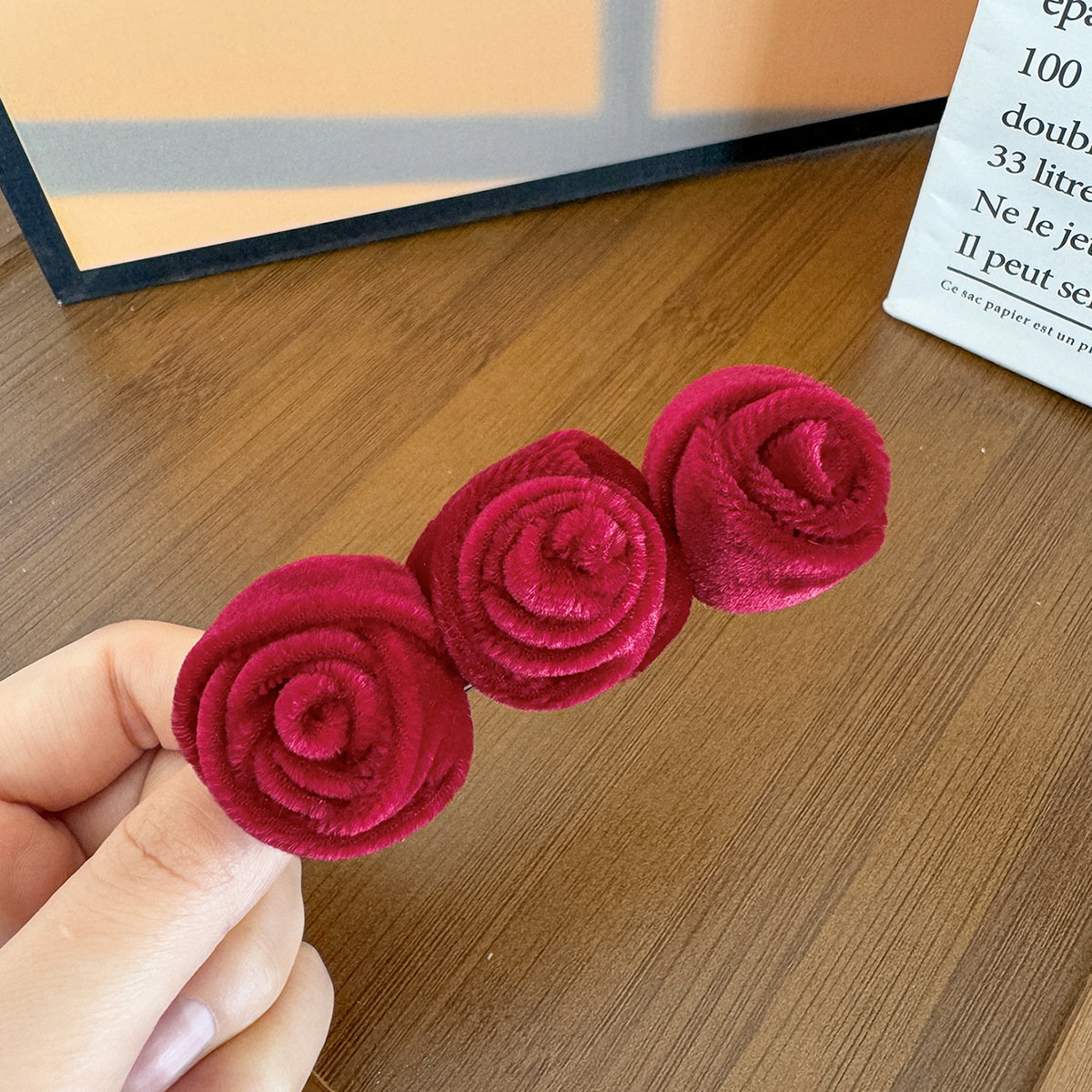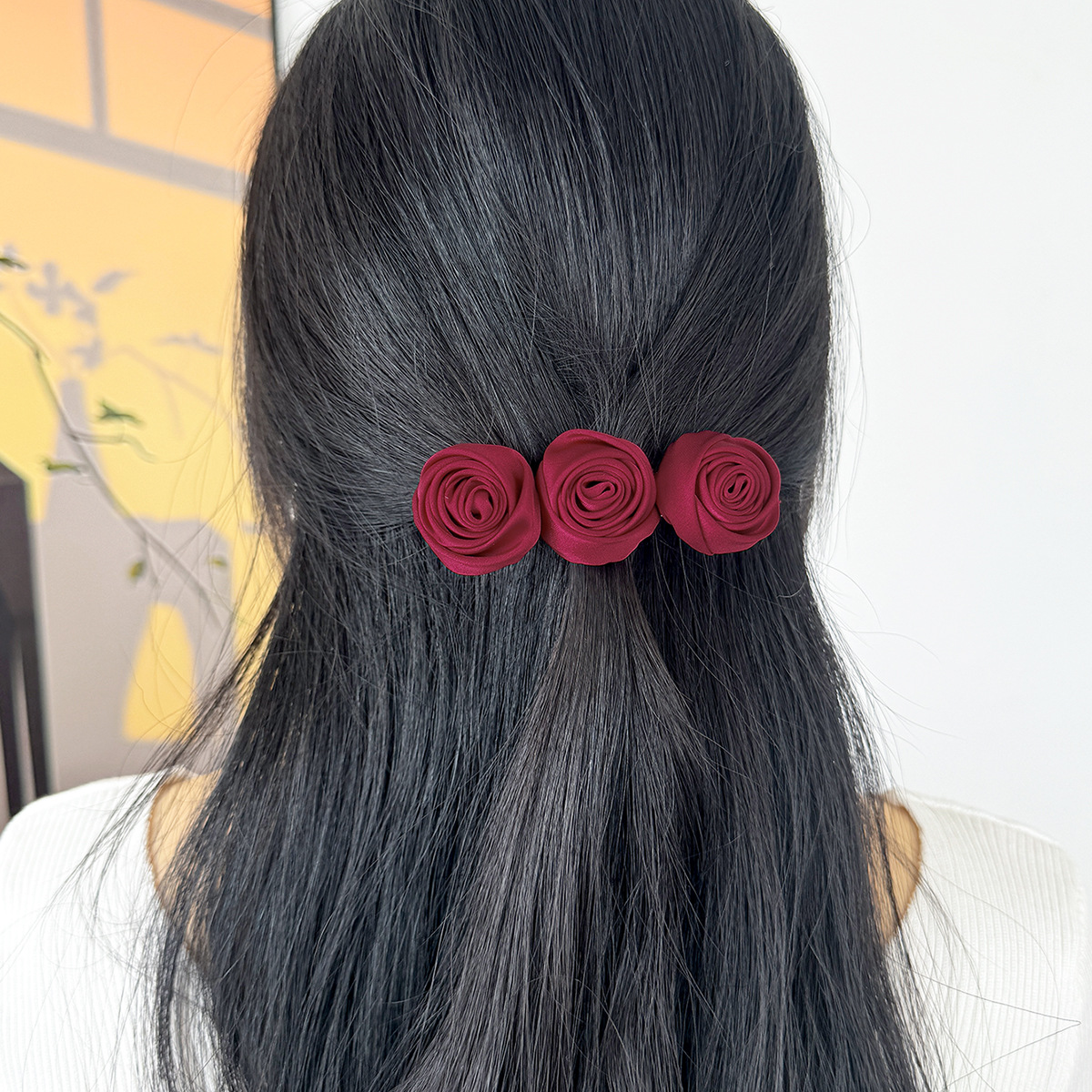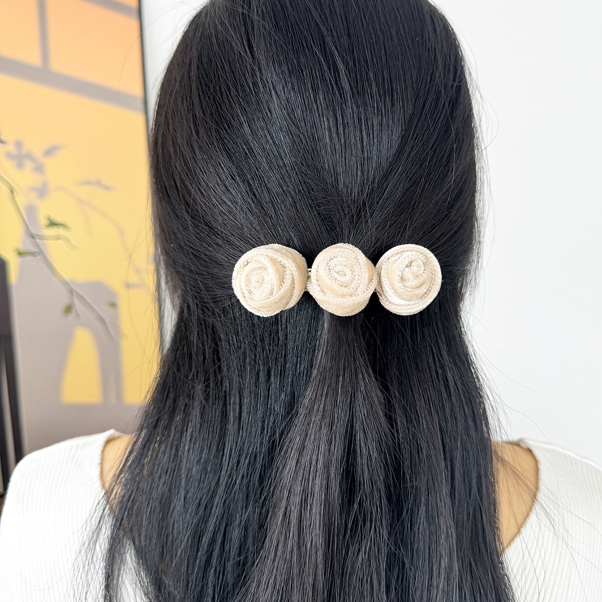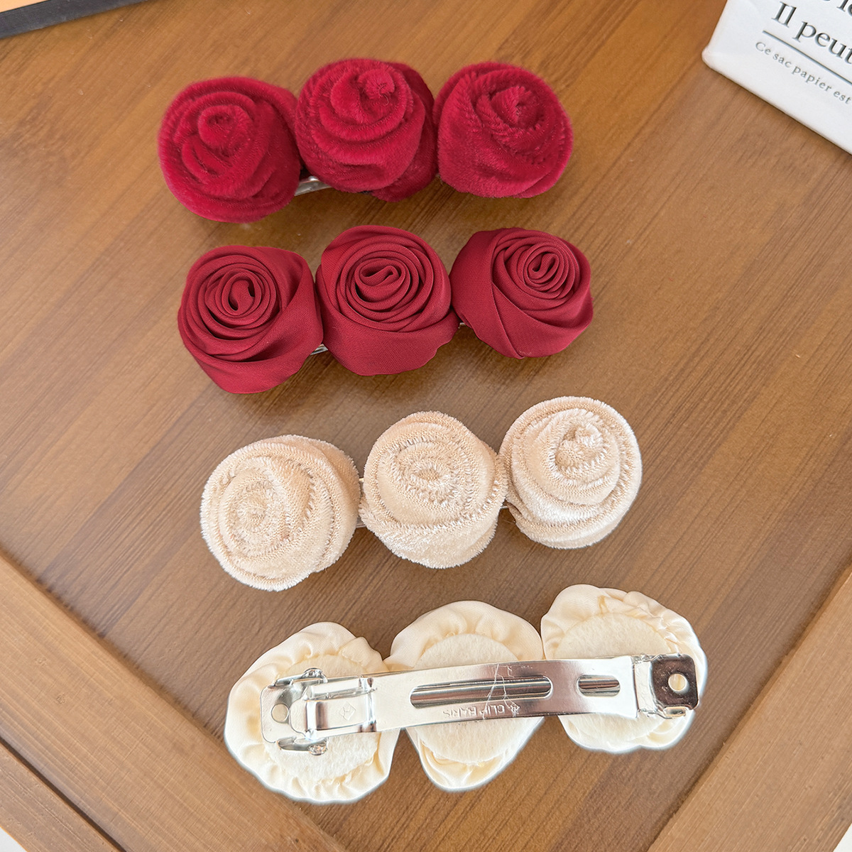 프랑스 레트로 새틴 로즈 헤어 클립 여성 슈퍼 페어리 우아한 올 매치 하이 엔드 헤드 스프링 클립 헤어 액세서리