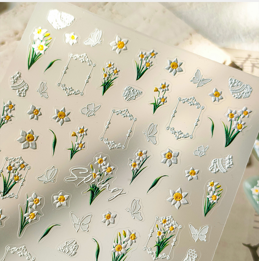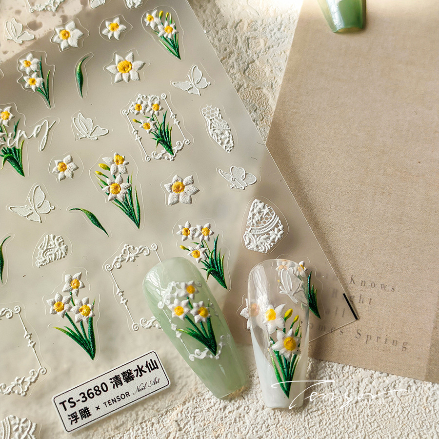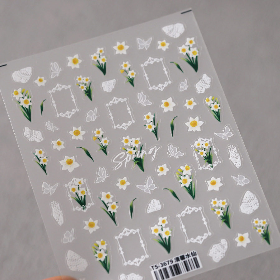 Magico Iron 신기술 얇은 힘든 네일 스티커 프로 양각 얇은 투명 네일 스티커 TS-3679 수선화