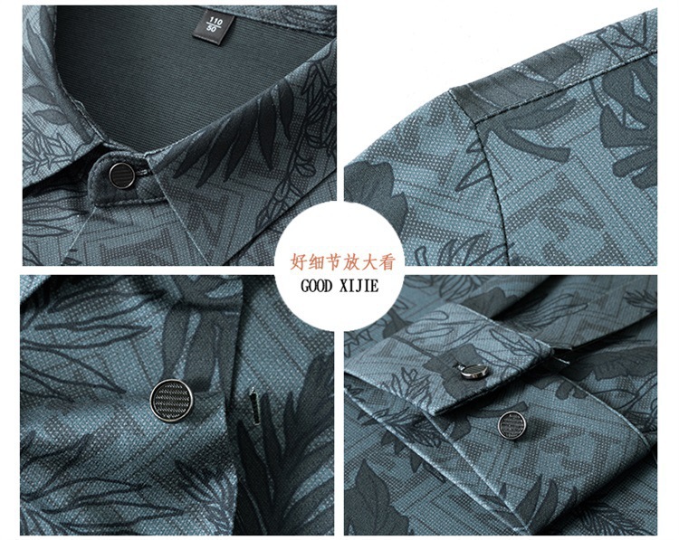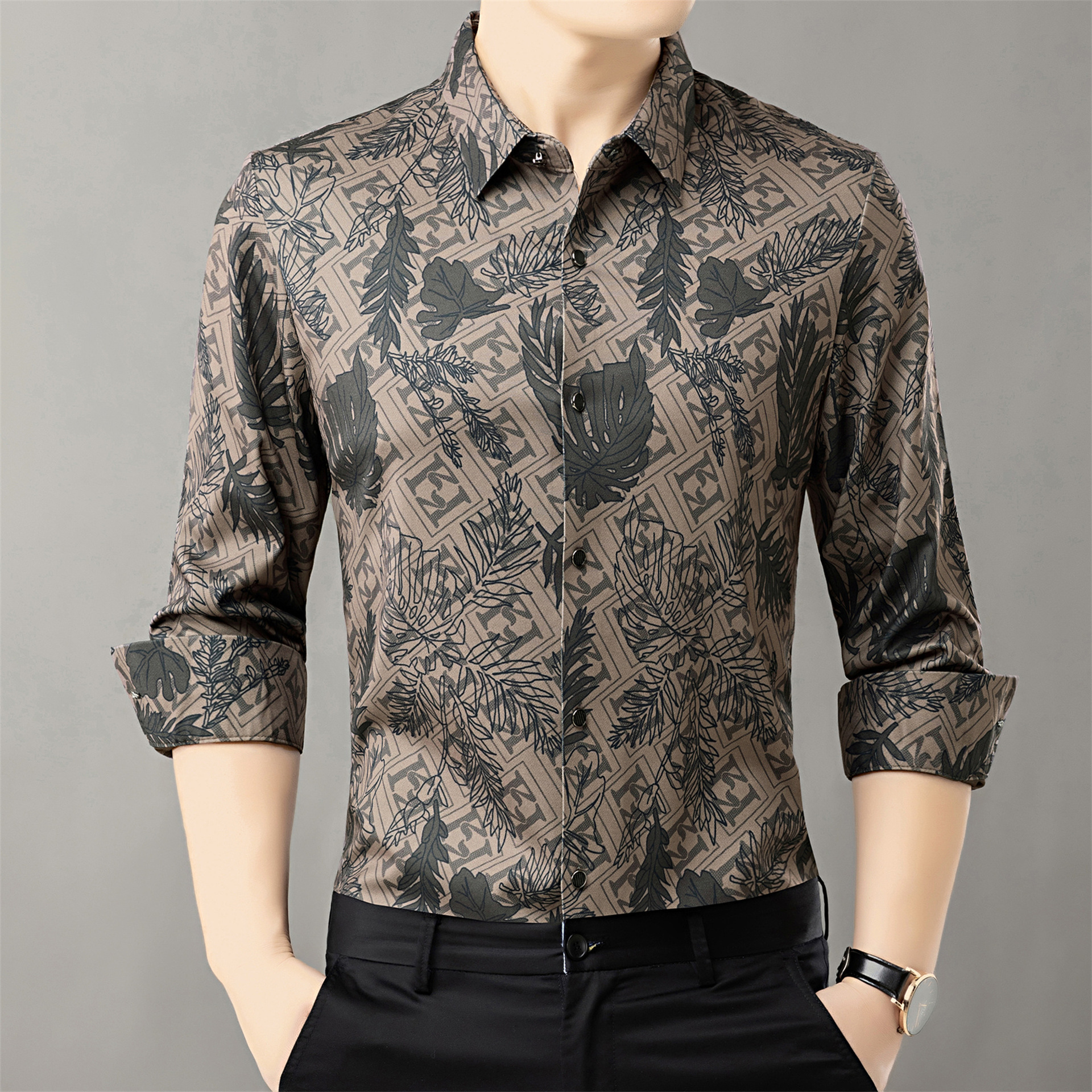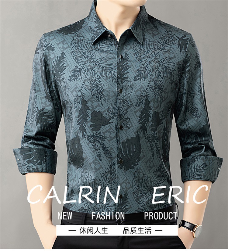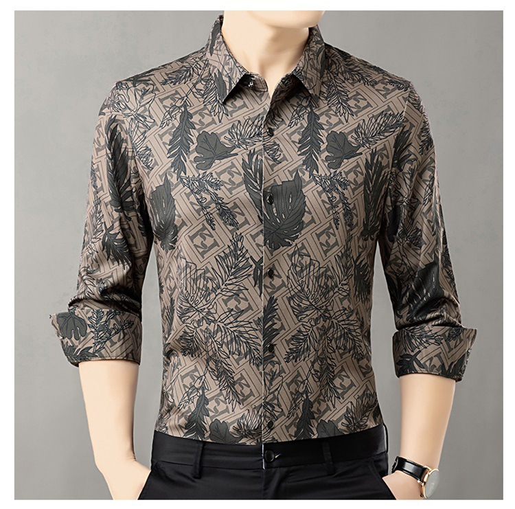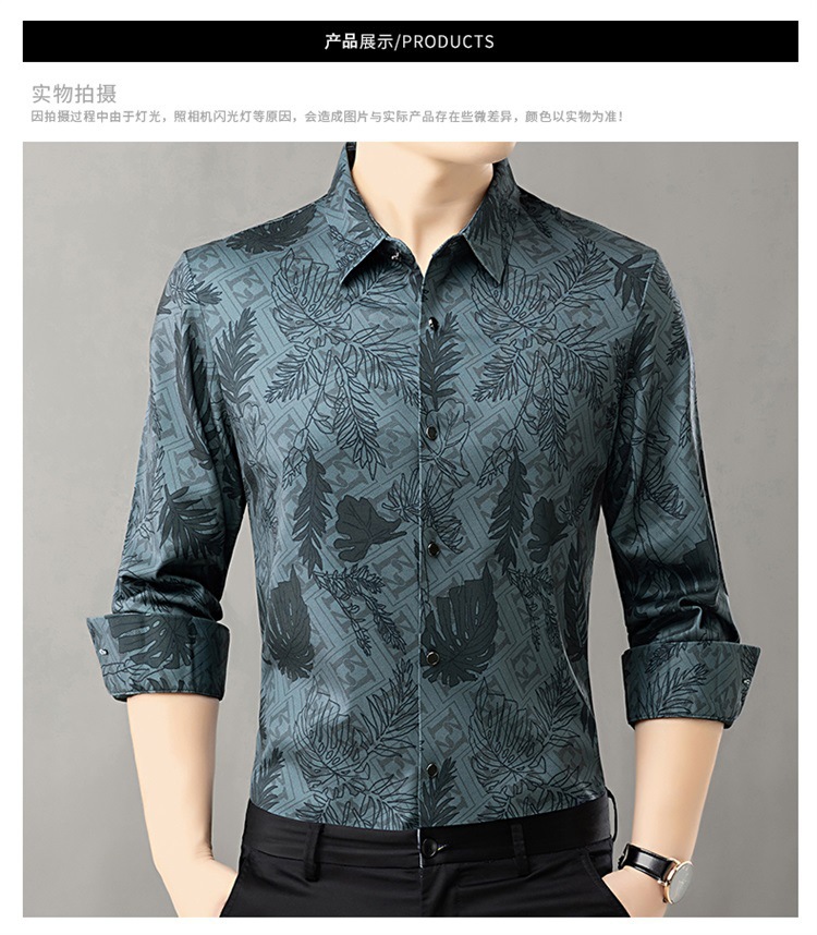 时尚轻奢男士花衬衫2024春秋潮流帅气丝滑长袖衬衣青年抗皱寸衫