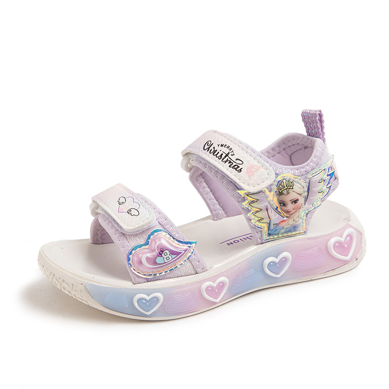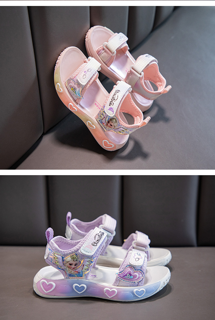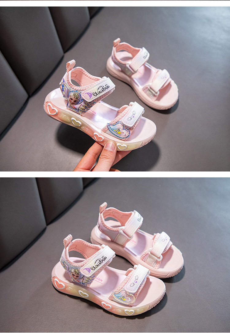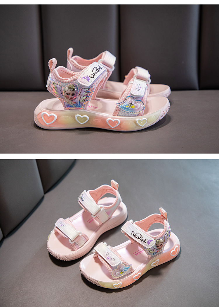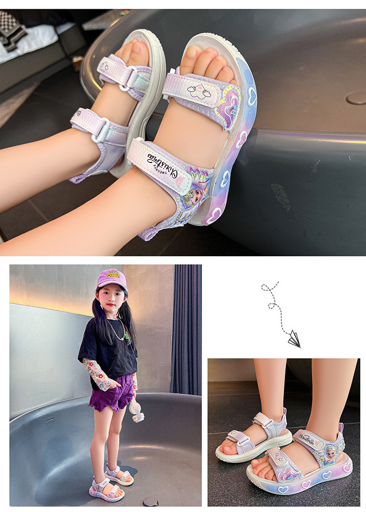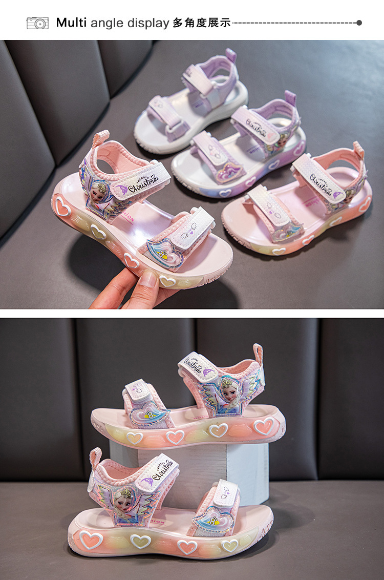 공주 엘사 소녀 샌들 2024 새로운 여름 패션 부드러운 바닥 어린이 해변 신발 그물 붉은 폭발 어린이 신발 도매스토어 가기