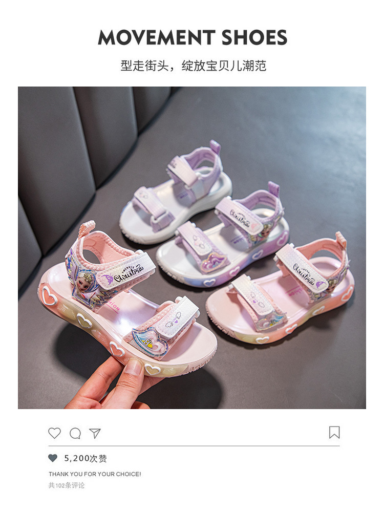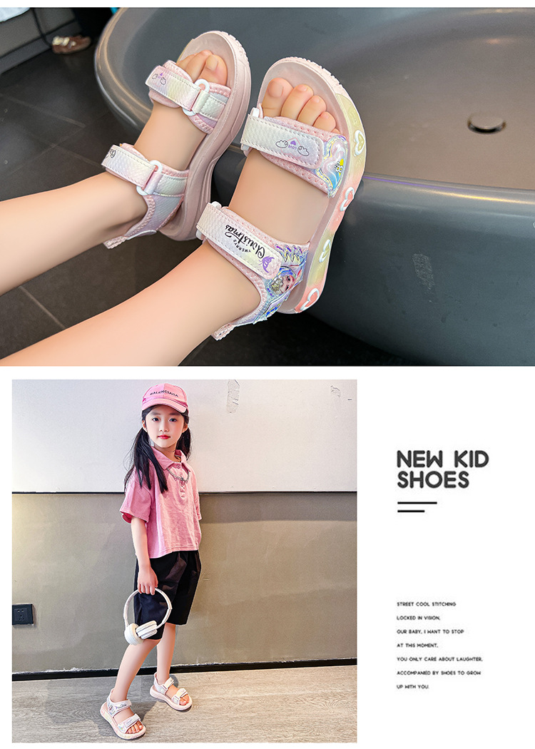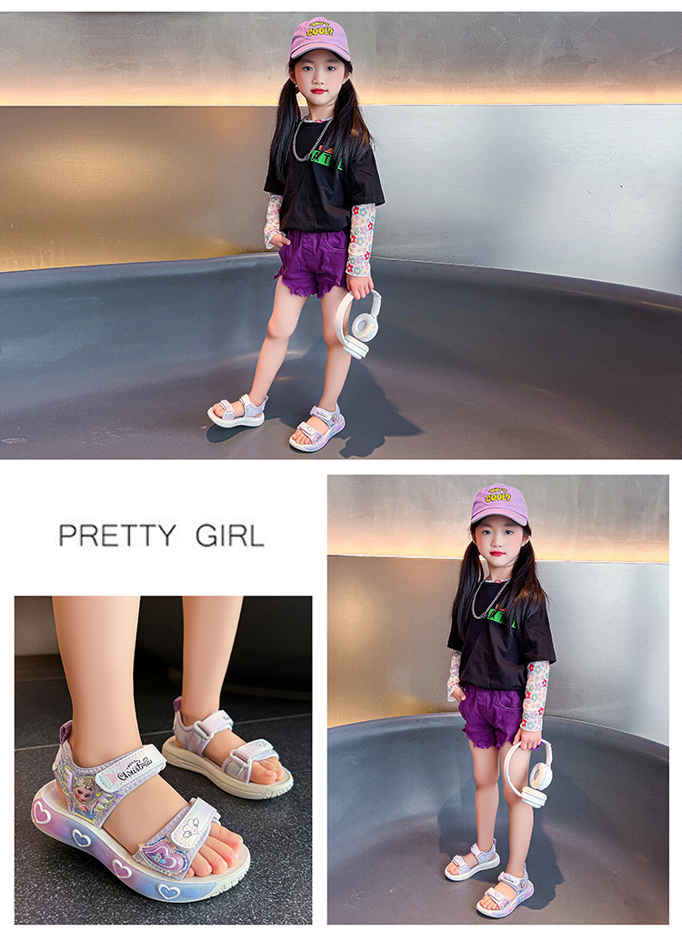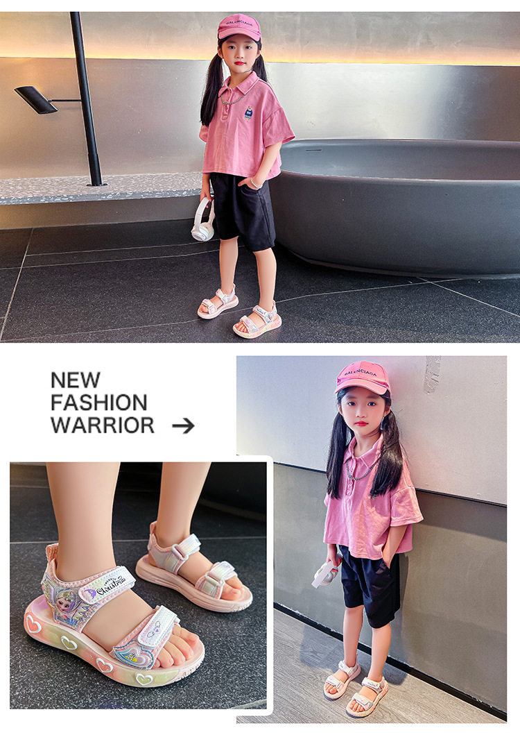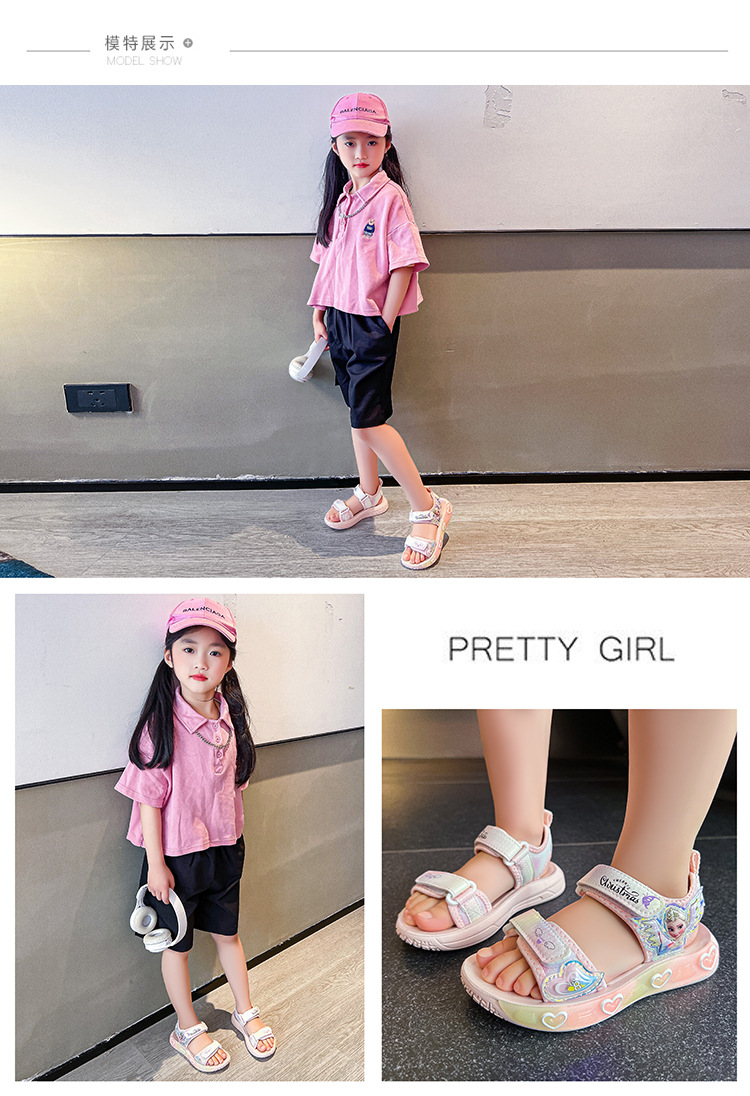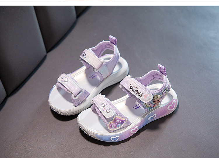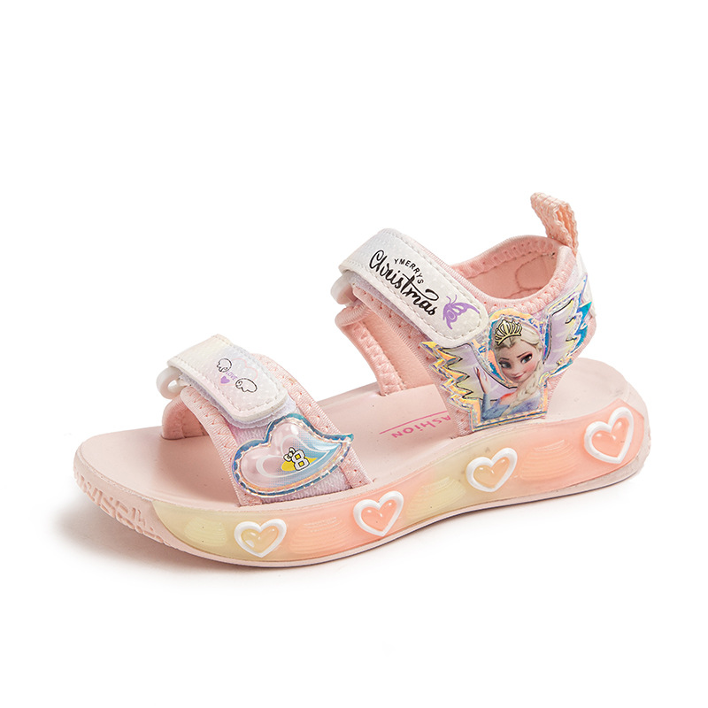 공주 엘사 소녀 샌들 2024 새로운 여름 패션 부드러운 바닥 어린이 해변 신발 그물 붉은 폭발 어린이 신발 도매스토어 가기