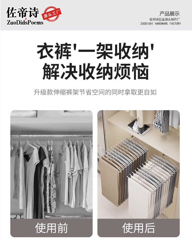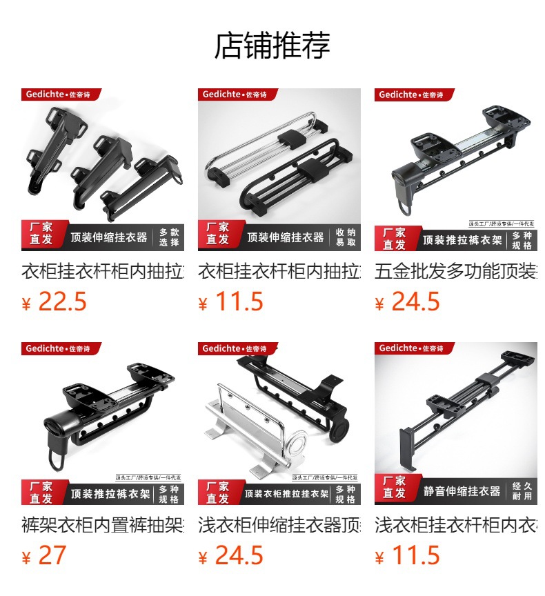 옷장 상단에 설치하는 접이식 옷걸이, 수납장 내부에 설치하는 수평 및 수직 슬라이드 레일 옷걸이, 검정색 드레스룸 옷걸이스토어 가기