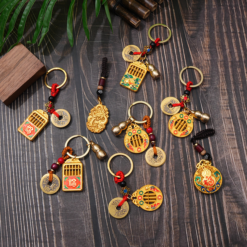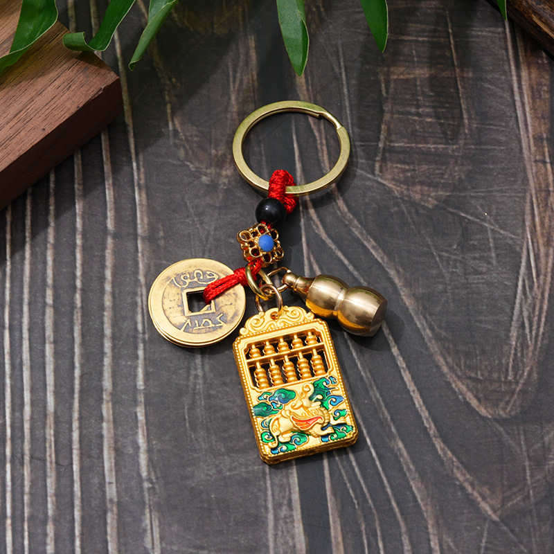 뜨거운 판매 다섯 황제 돈 복고풍 모래 금 Abacus 키 체인 창조적 인 Abacus Hoist 자동차 키 펜던트