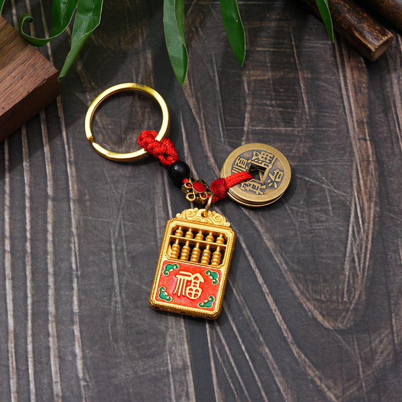 뜨거운 판매 다섯 황제 돈 복고풍 모래 금 Abacus 키 체인 창조적 인 Abacus Hoist 자동차 키 펜던트스토어 가기