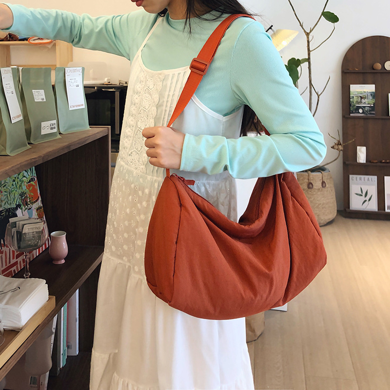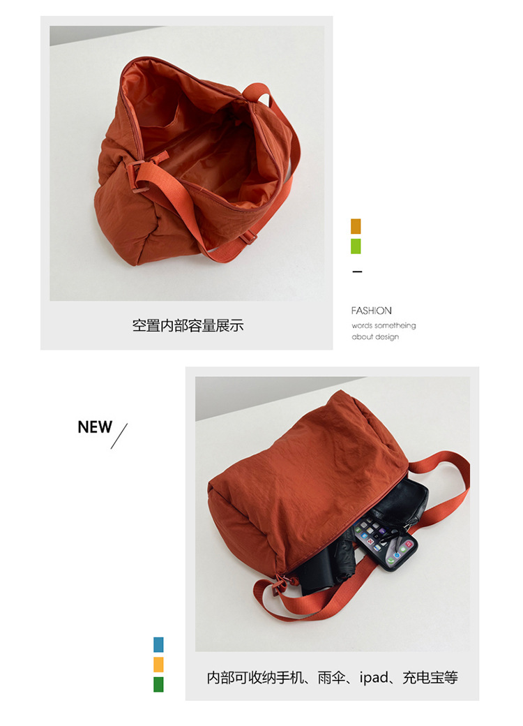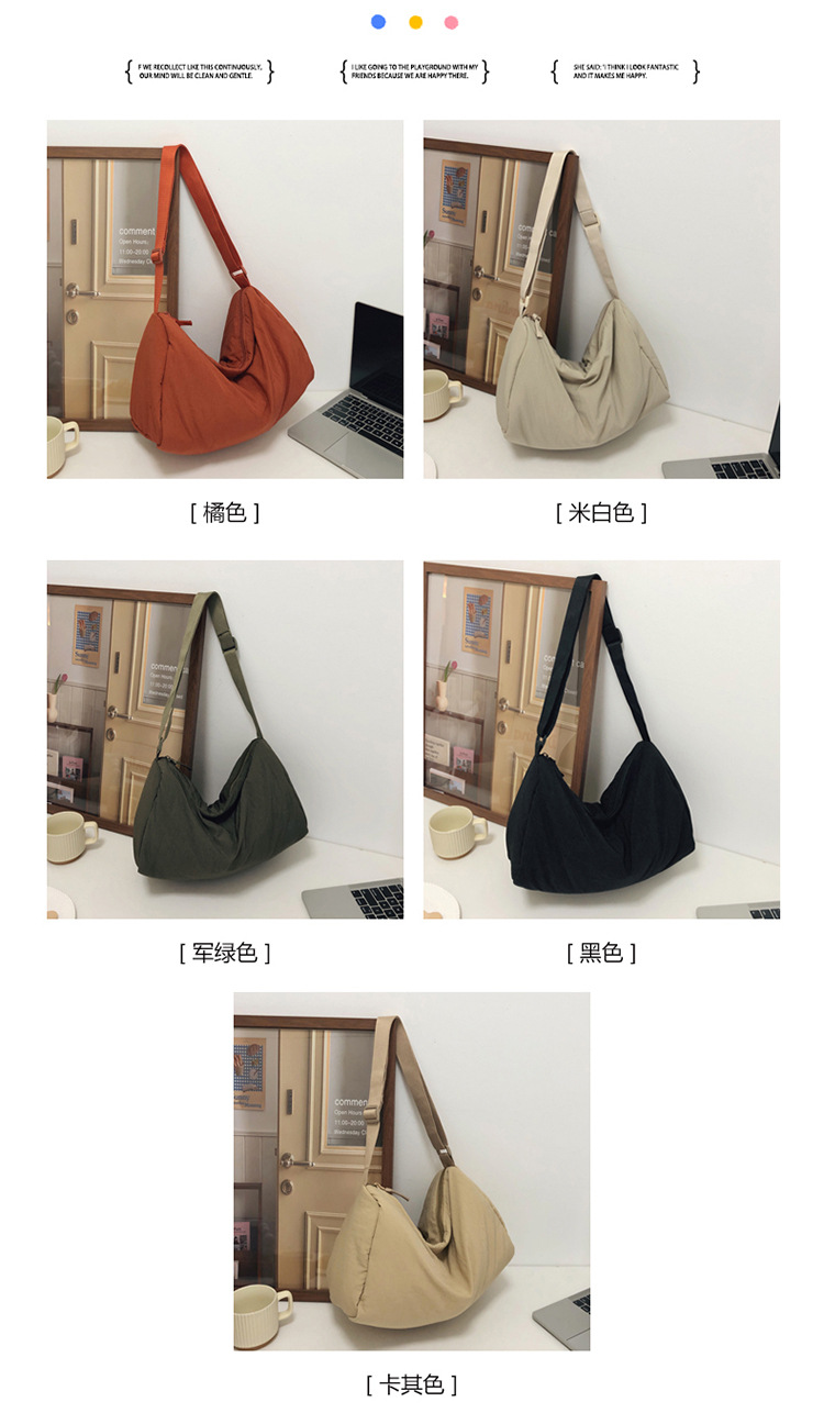 국경 2024 새로운 U 스타일 여성 가방 나일론 가방 간단한 대용량 어깨 크로스 바디 여행 가방