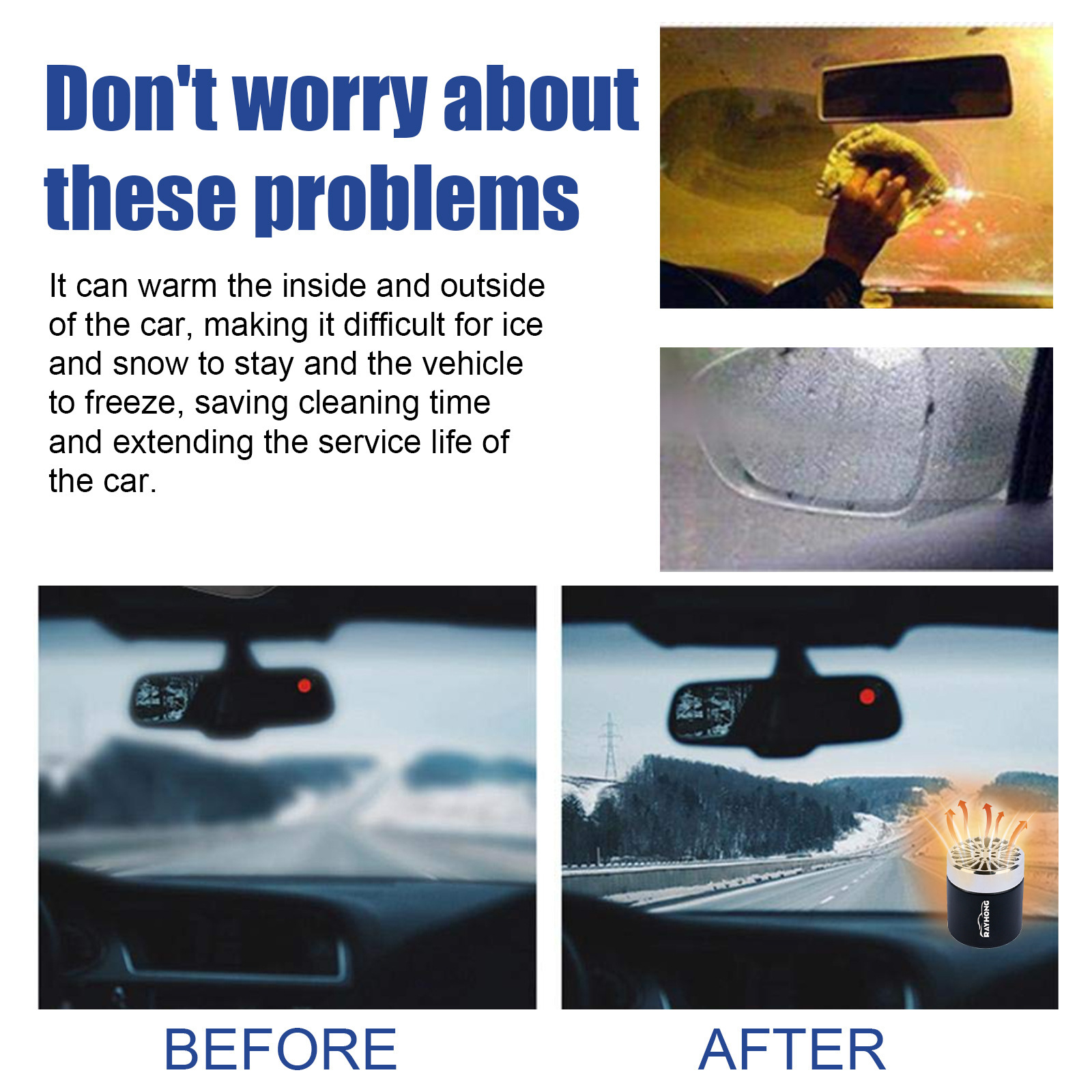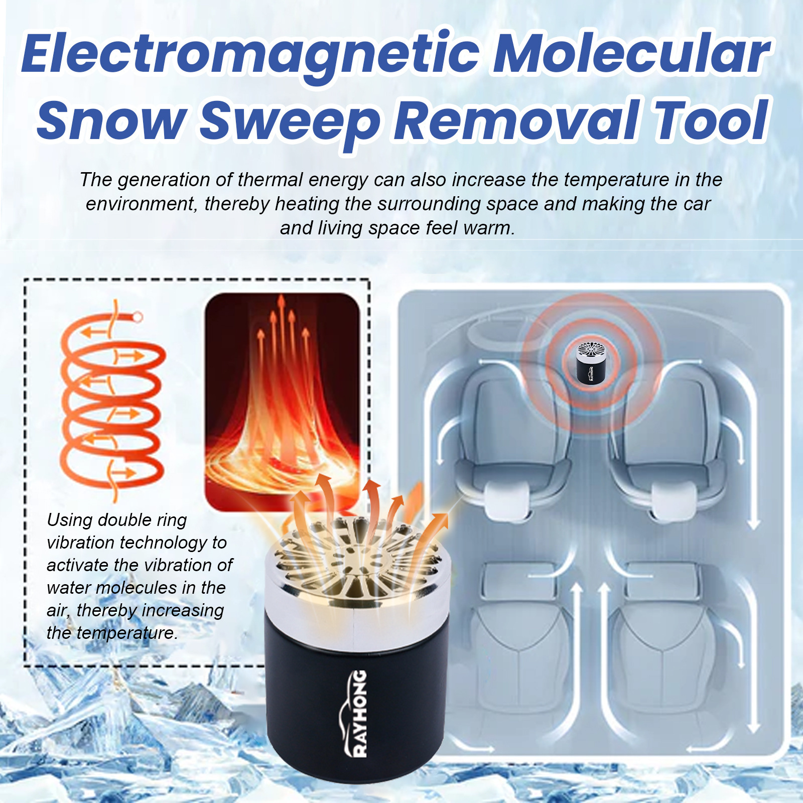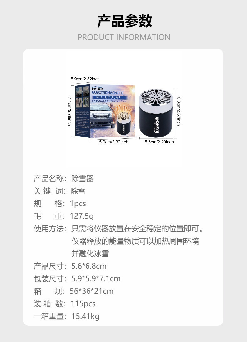 Rayhong 스노우 리무버 자동차 앞 유리 눈 녹는 제빙 도구 빠르고 편리한 제빙 히터스토어 가기