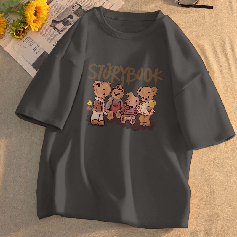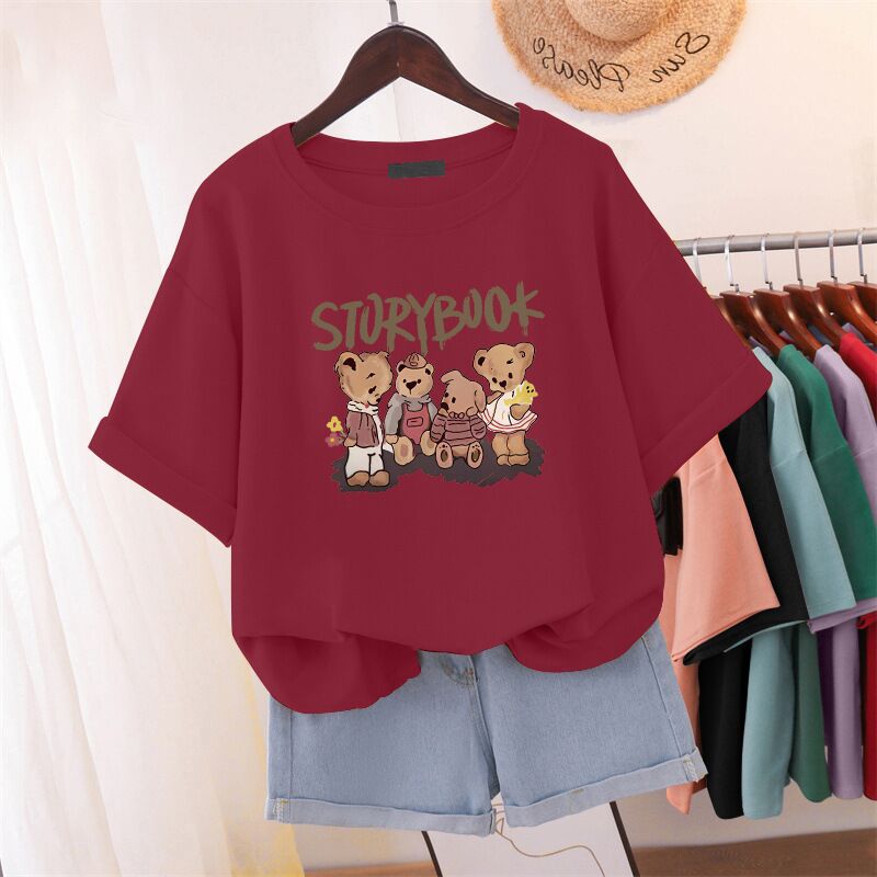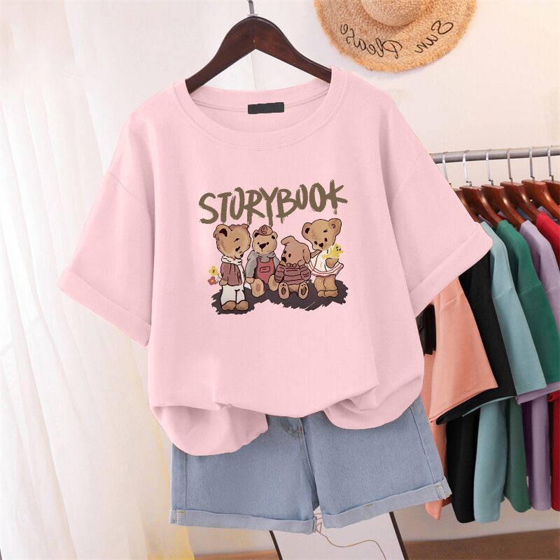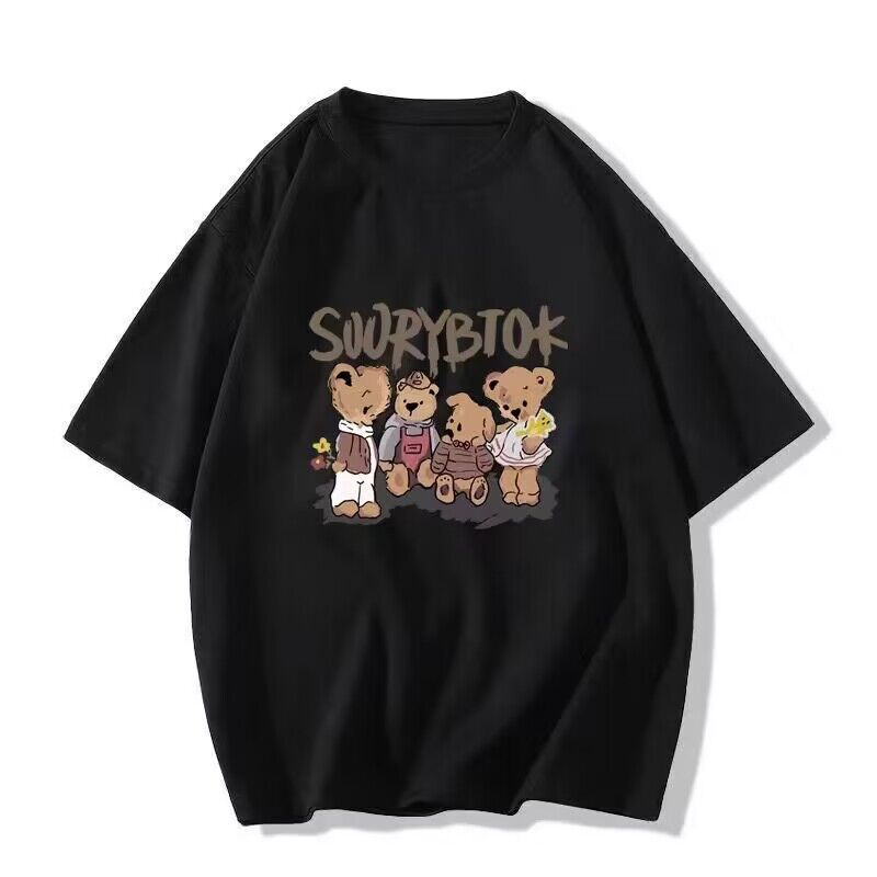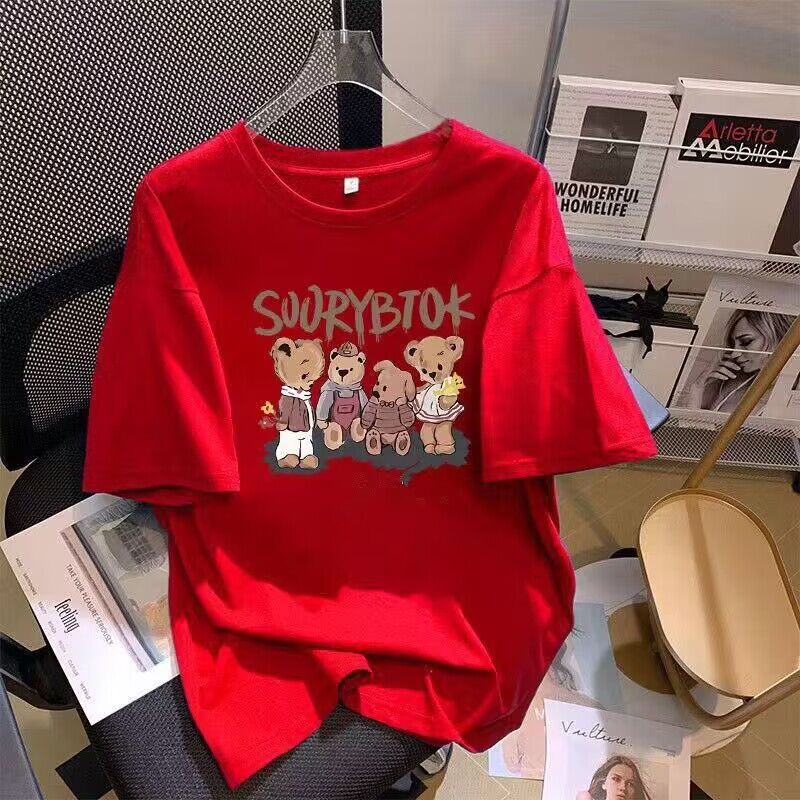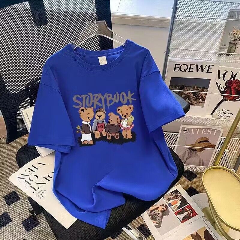 반팔 티셔츠 여성용 화려한 어깨 2024 여름 새로운 탑 소녀의 부드러운 반팔 티셔츠 만화 귀여운스토어 가기