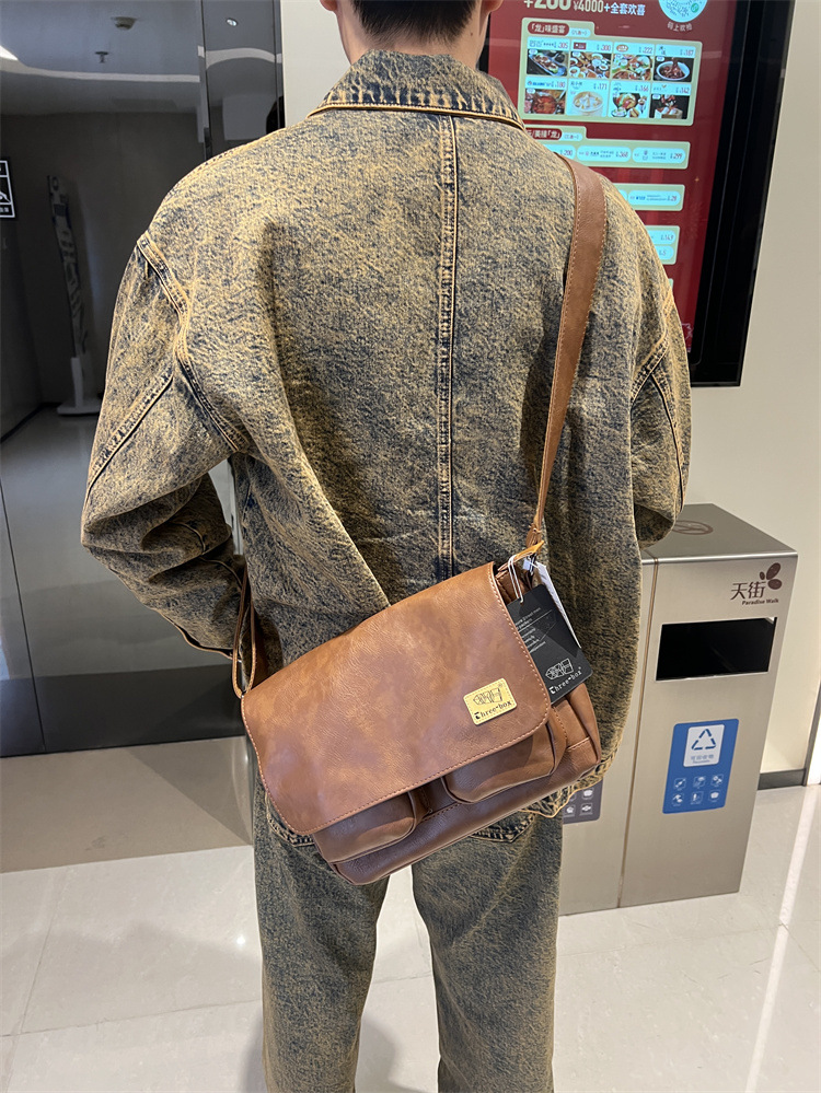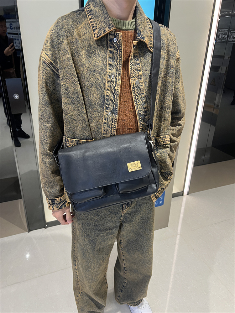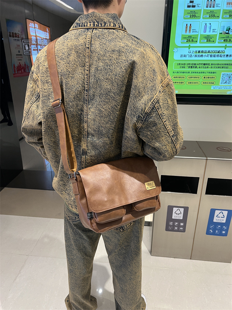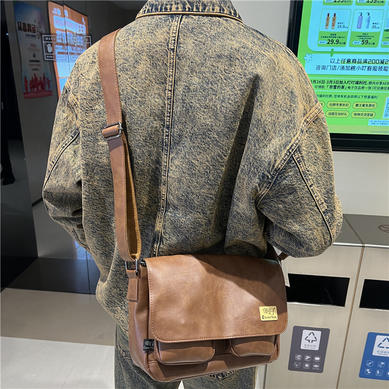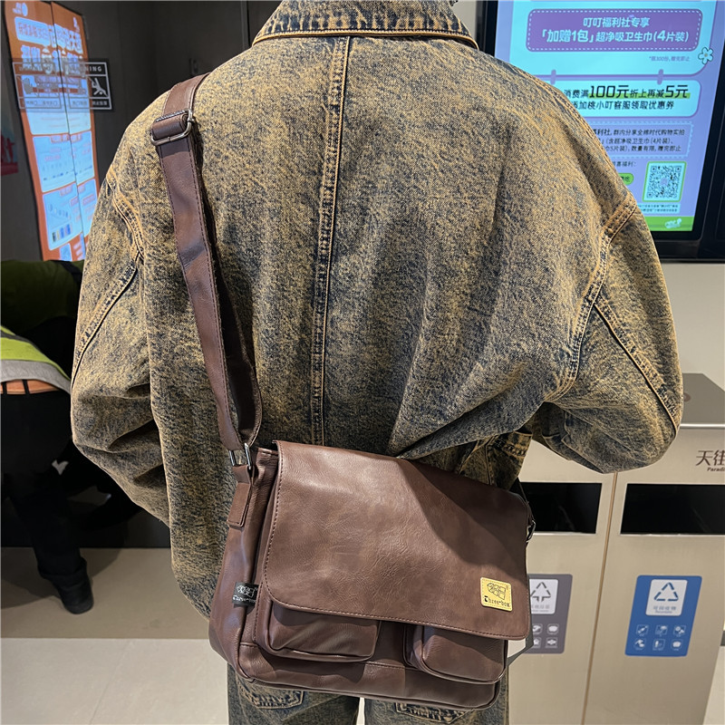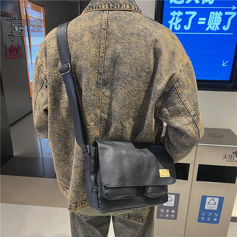 潮牌斜挎包男单肩包日系休闲男士运动男生背包男包机车包邮差大包