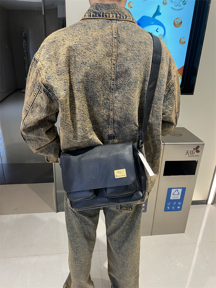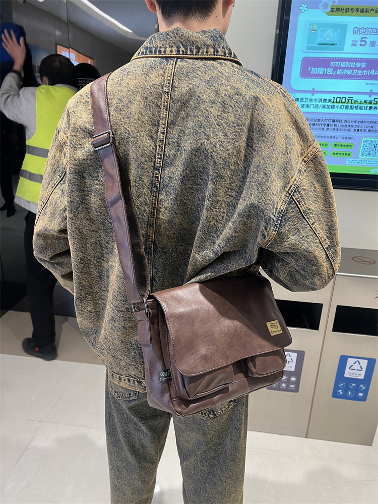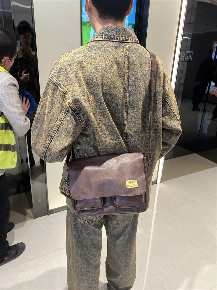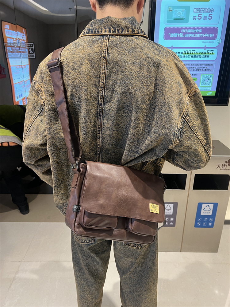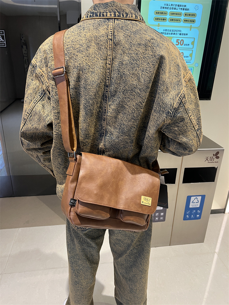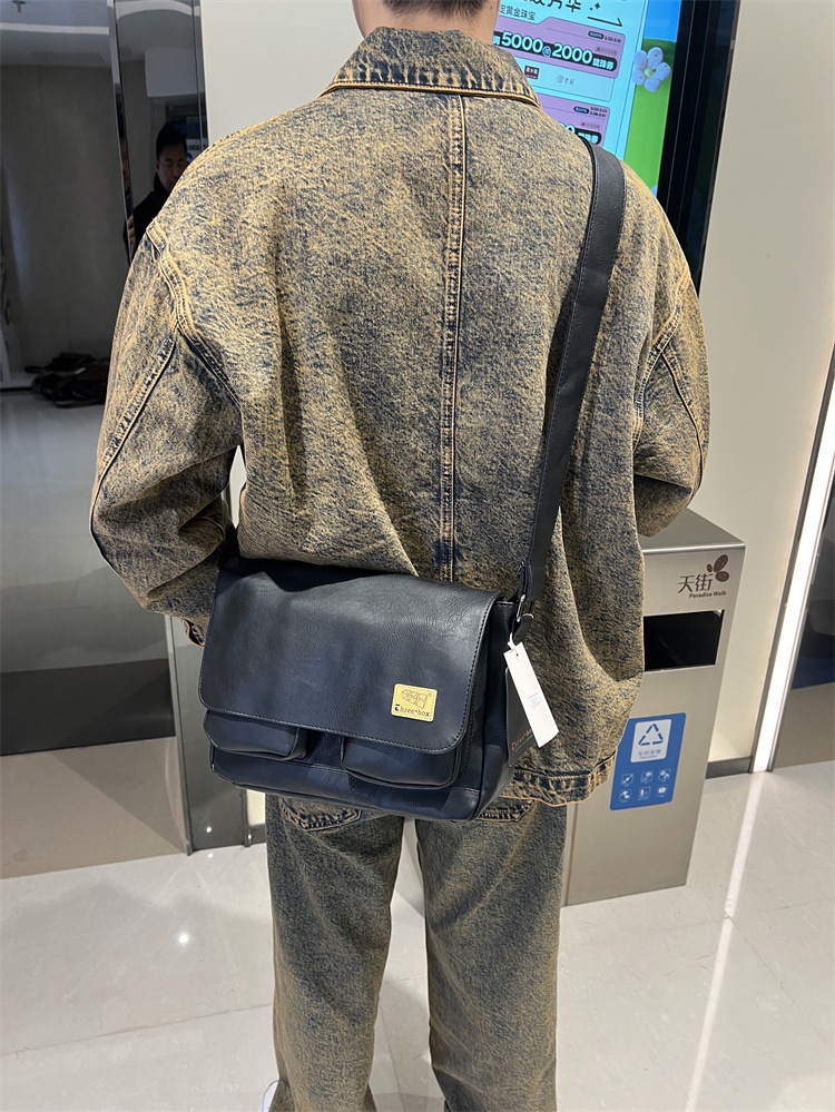 潮牌斜挎包男单肩包日系休闲男士运动男生背包男包机车包邮差大包