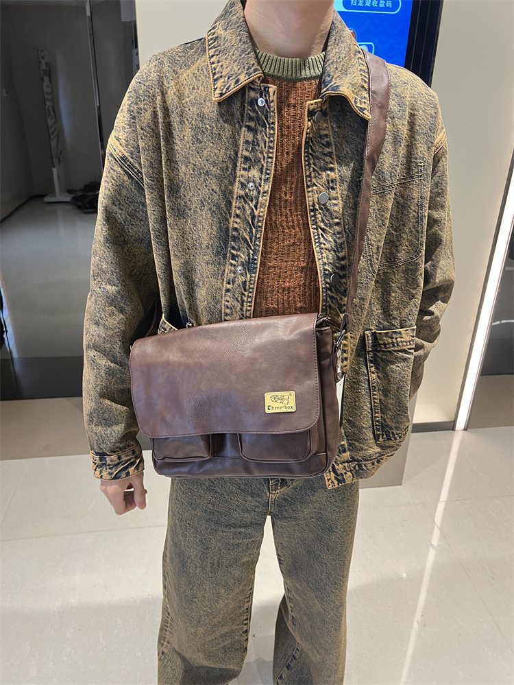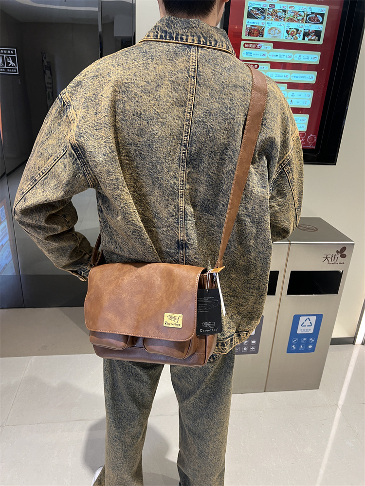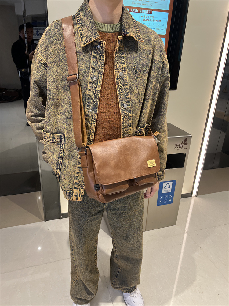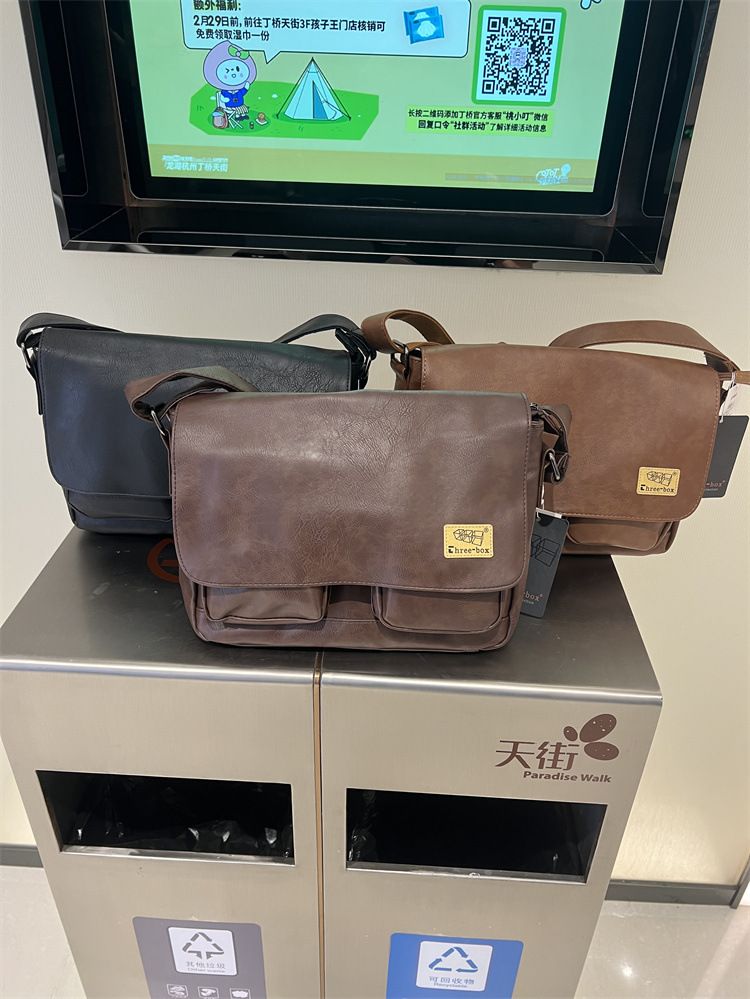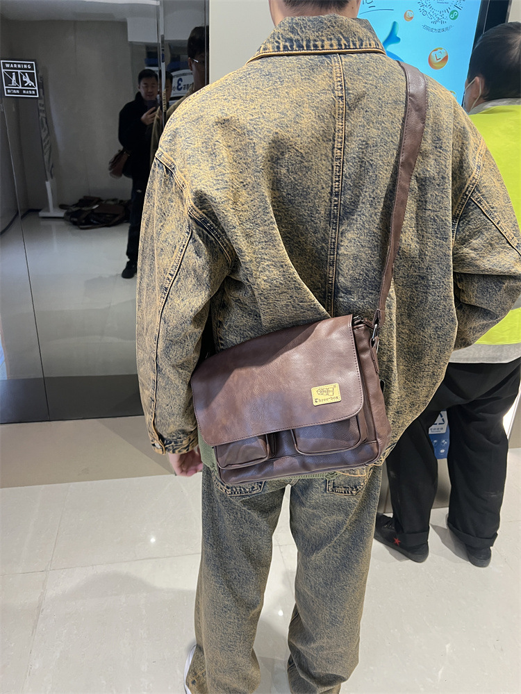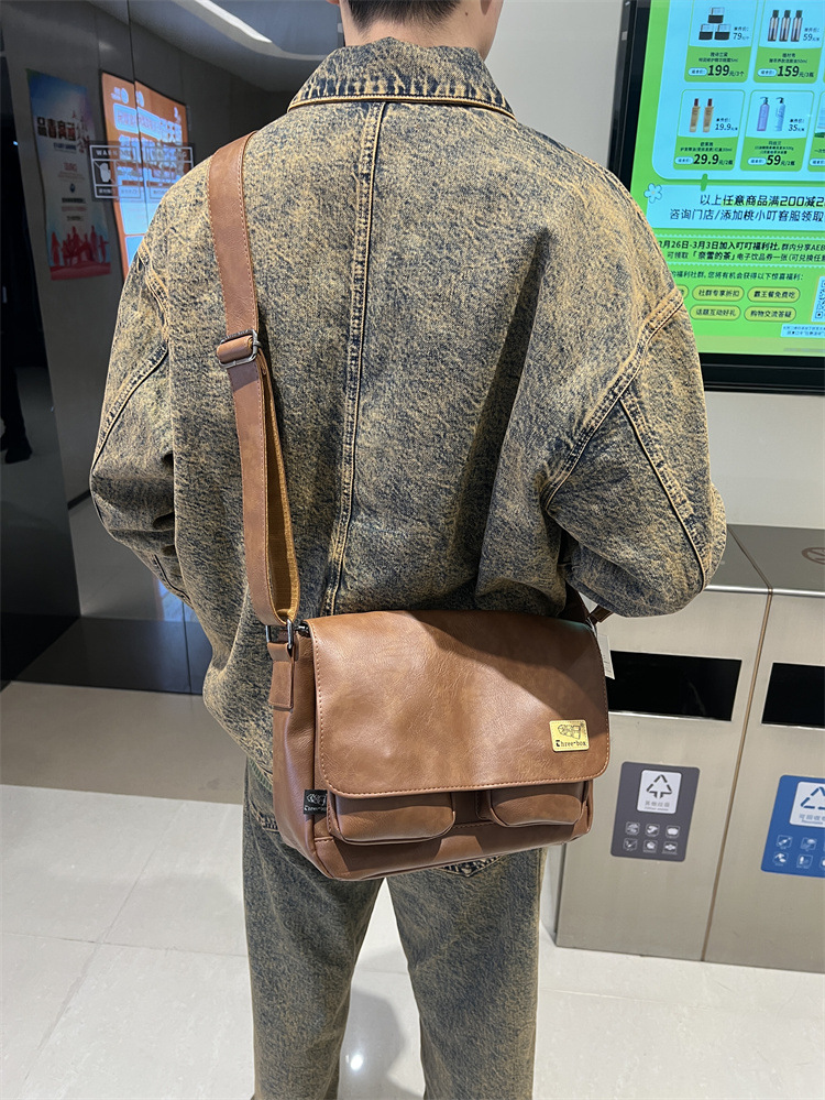 潮牌斜挎包男单肩包日系休闲男士运动男生背包男包机车包邮差大包