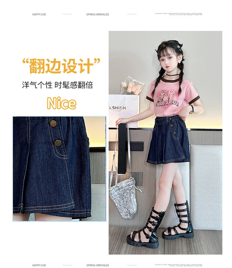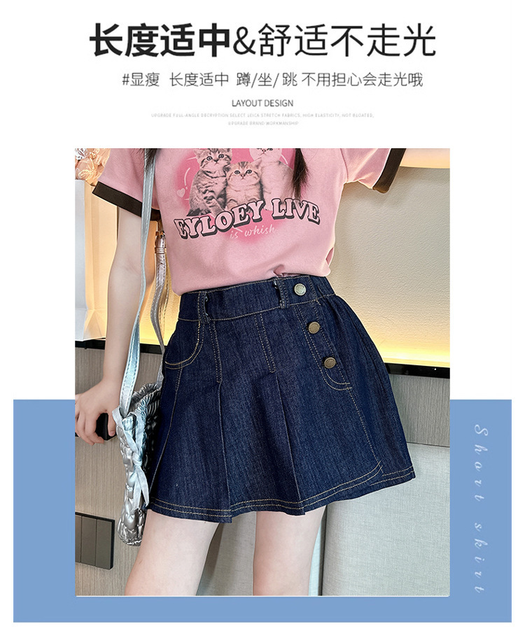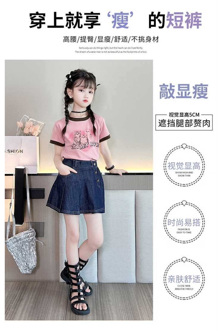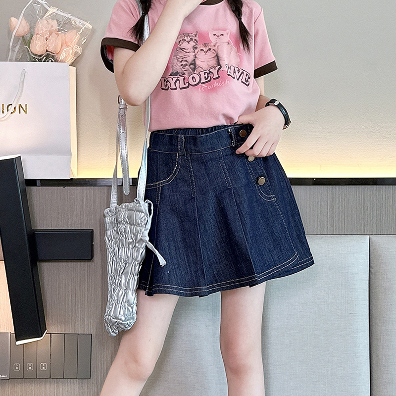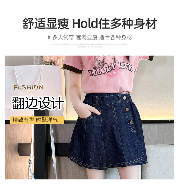 크로스보더 여아 데님 반바지 2025 중대형 아동복 패션 플리츠 스커트 팬츠 트렌디하고 다용도로 활용 가능한 캐주얼 핫팬츠 여름스토어 가기