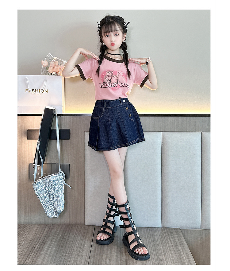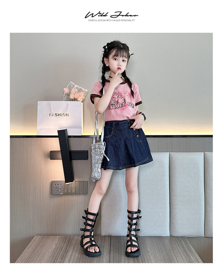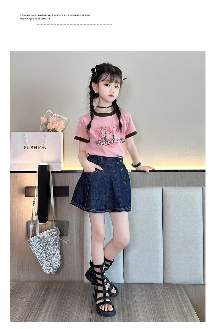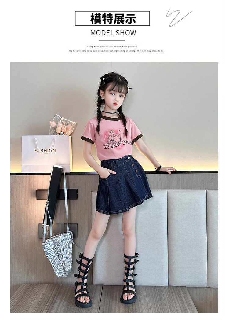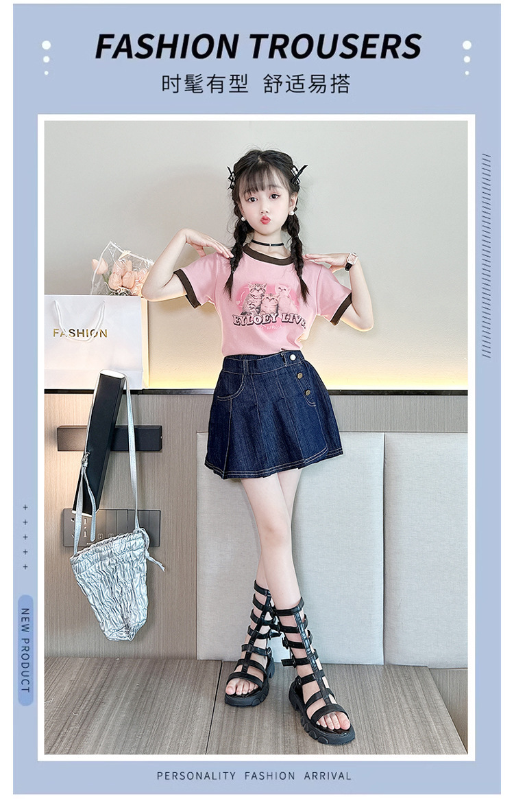 크로스보더 여아 데님 반바지 2025 중대형 아동복 패션 플리츠 스커트 팬츠 트렌디하고 다용도로 활용 가능한 캐주얼 핫팬츠 여름스토어 가기