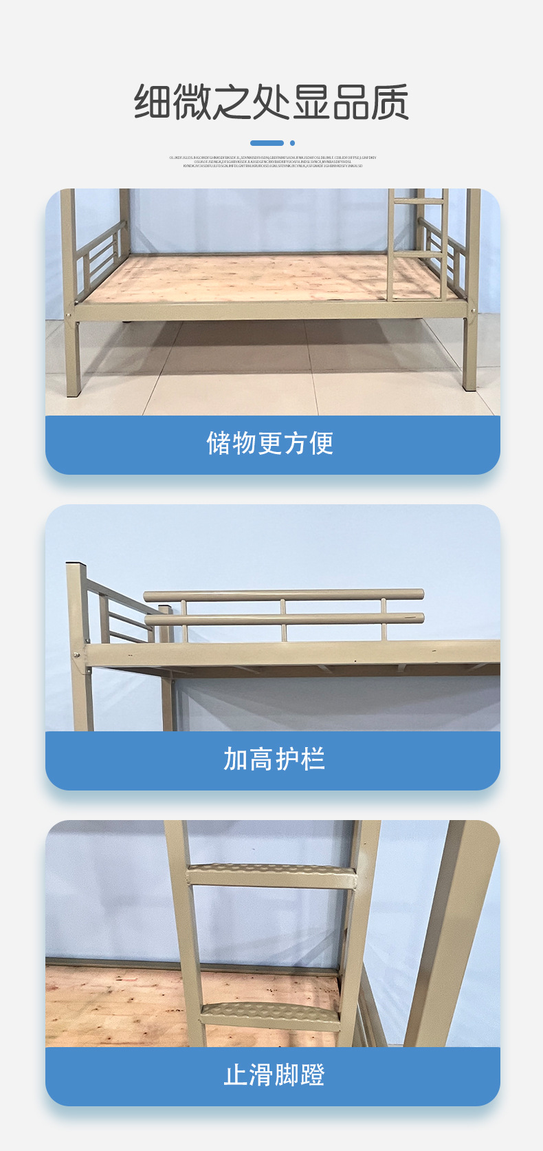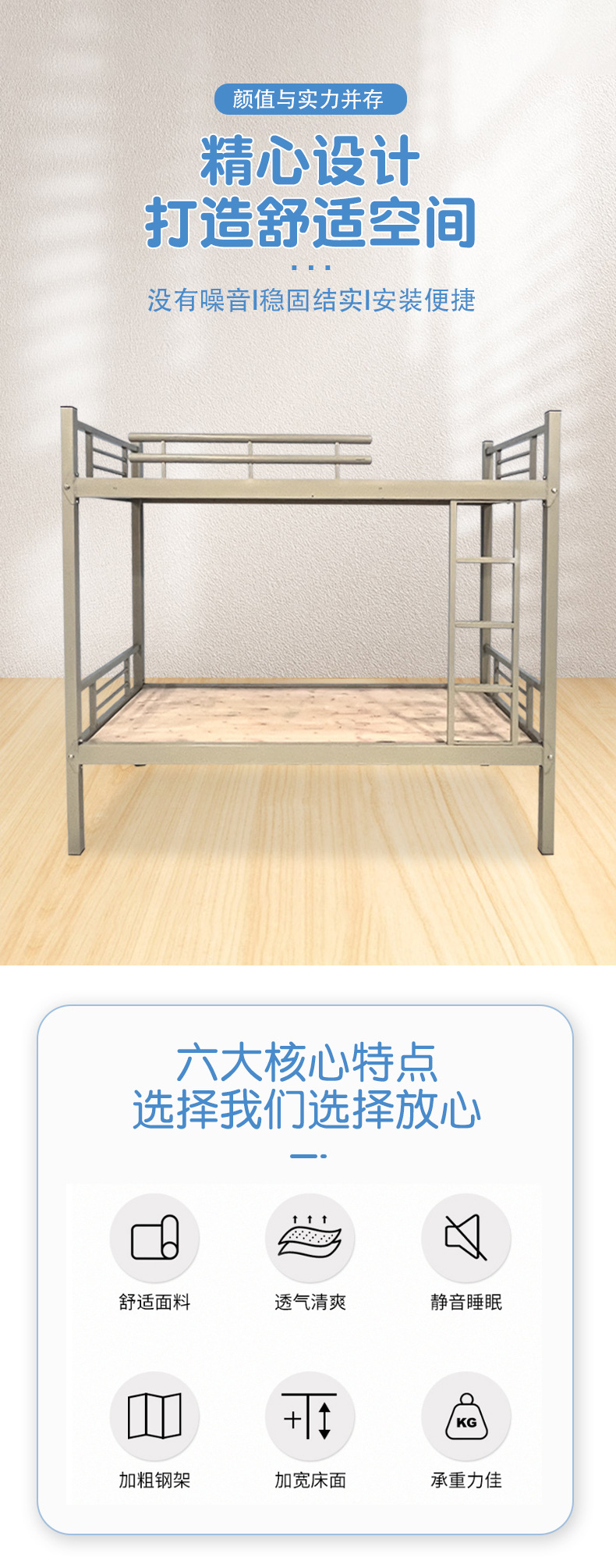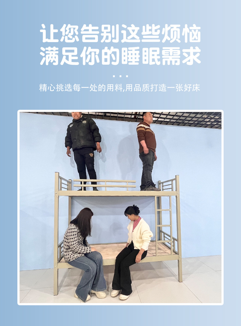 난간이 있는 이층침대, 학교 기숙사, 건설 현장용 이층 철제 침대, 청년호스텔, 철제 프레임 침대, 학생 기숙사 필수품스토어 가기