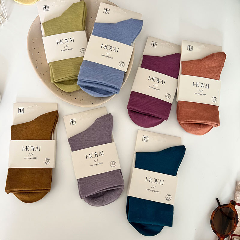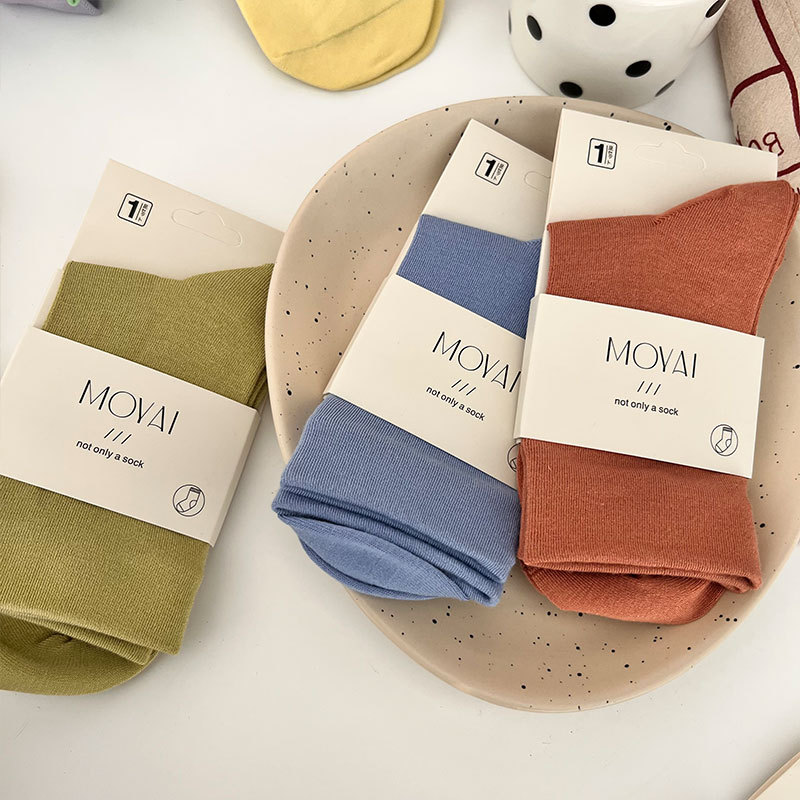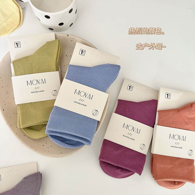 라이크라 미드 튜브 양말 여성용 올인원 기계 뼈없는 재봉 헤드 탄성 캐주얼 양말 4 시즌 학술 스타일 스태킹 양말스토어 가기