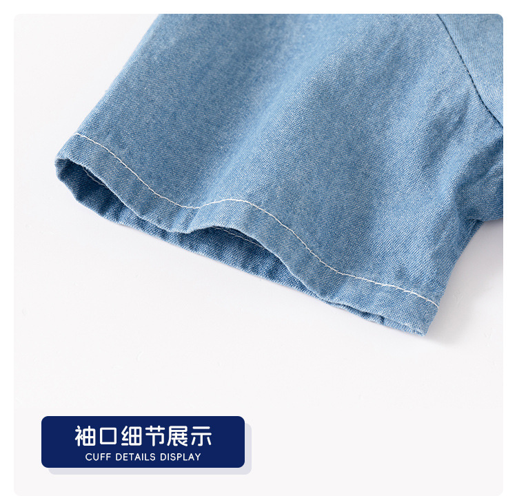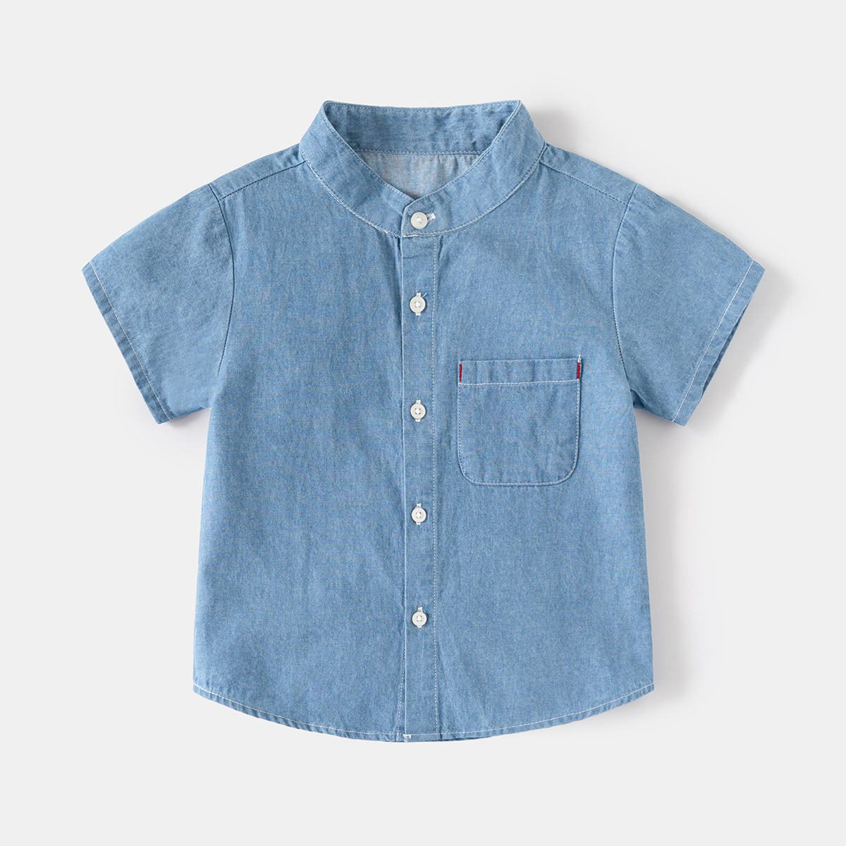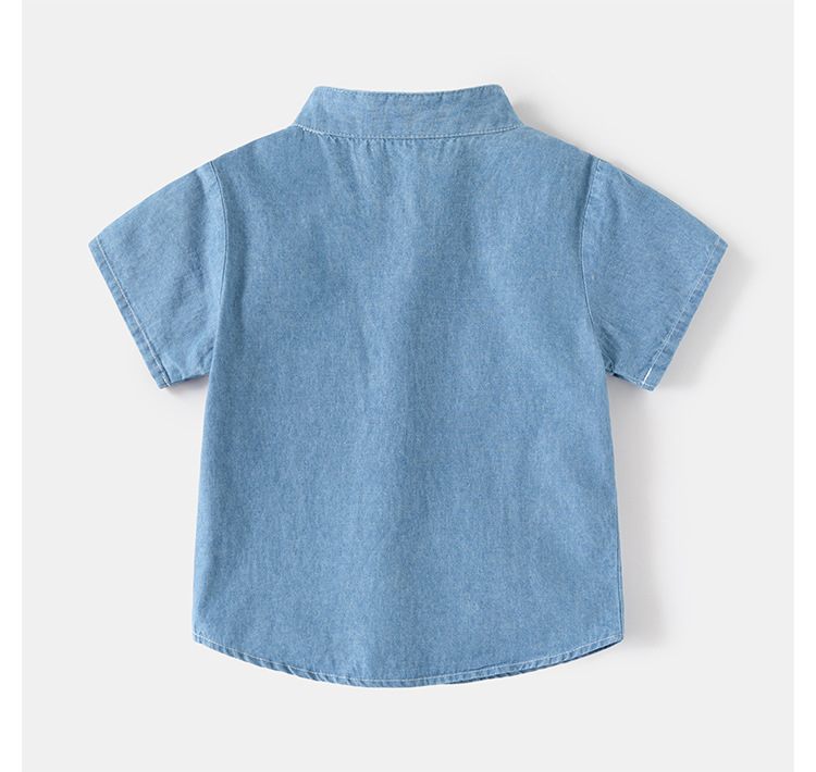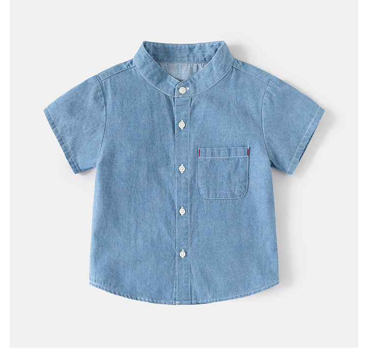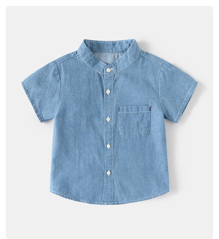 어린이 데님 반팔 셔츠 2024 여름 소년 셔츠 한국 아기 스탠드 칼라 패션 아동복 여름 도매
