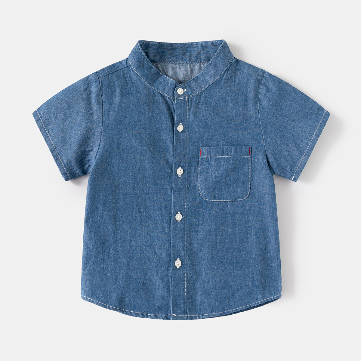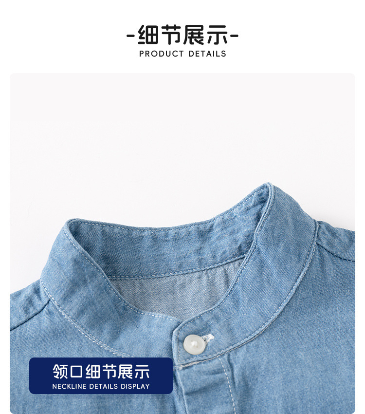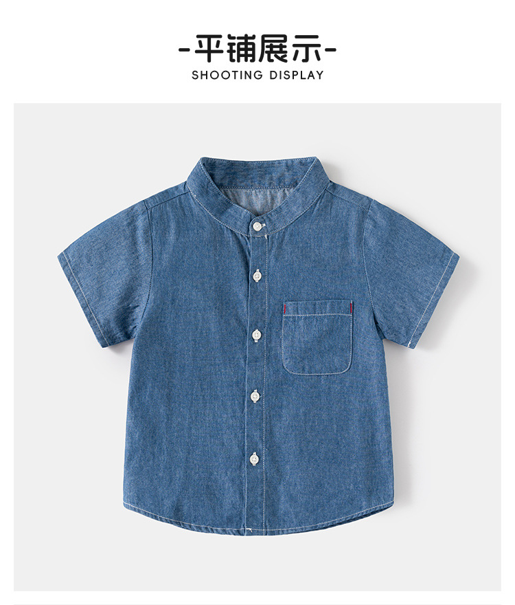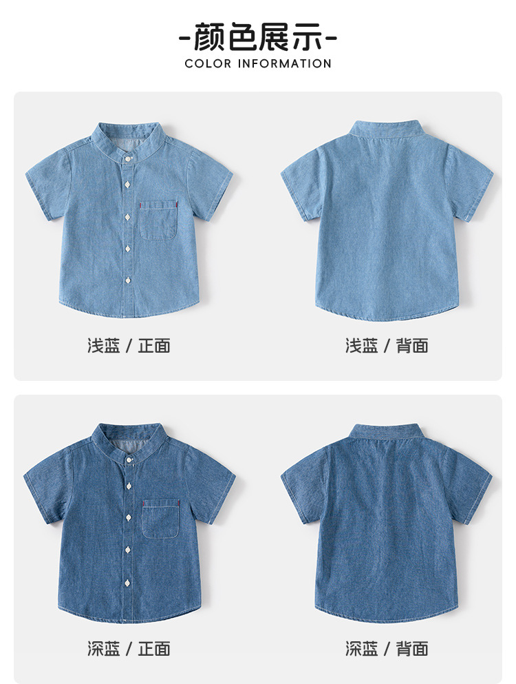 어린이 데님 반팔 셔츠 2024 여름 소년 셔츠 한국 아기 스탠드 칼라 패션 아동복 여름 도매스토어 가기