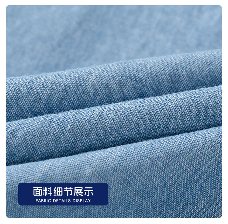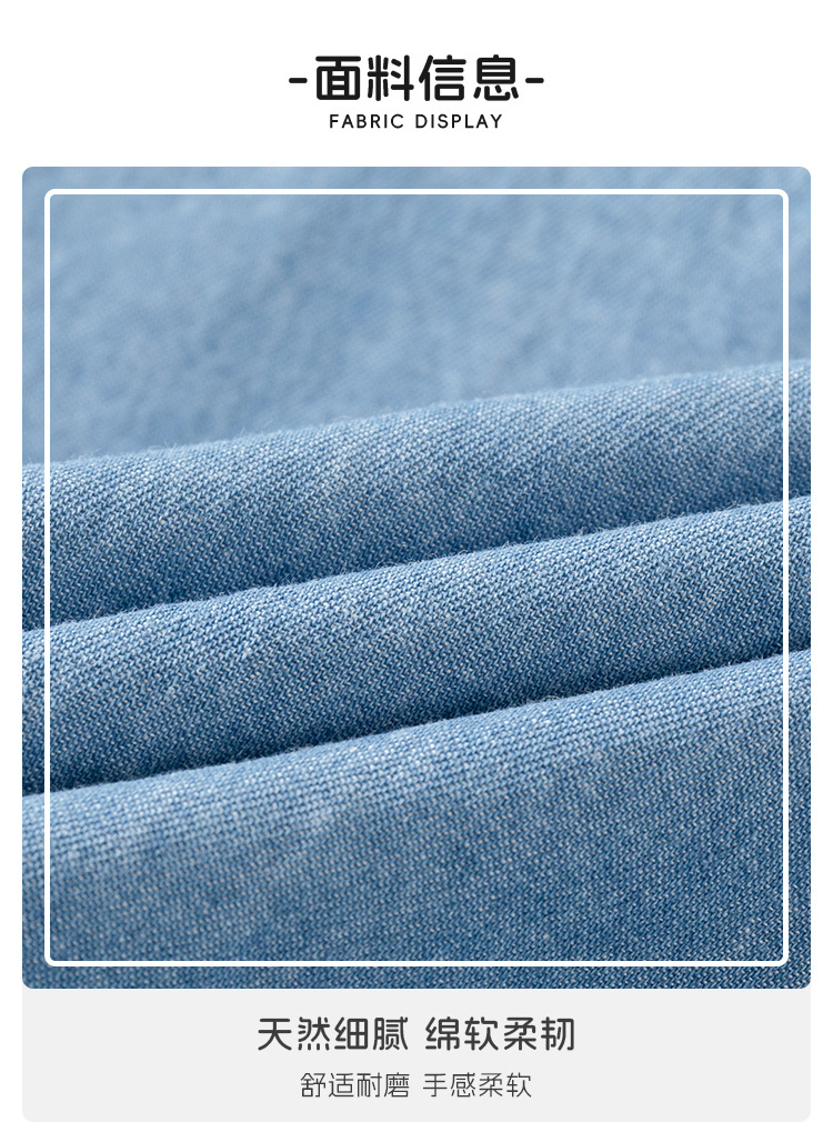 • 라이트 블루 스탠드 칼라 짧은 소매 데님 셔츠