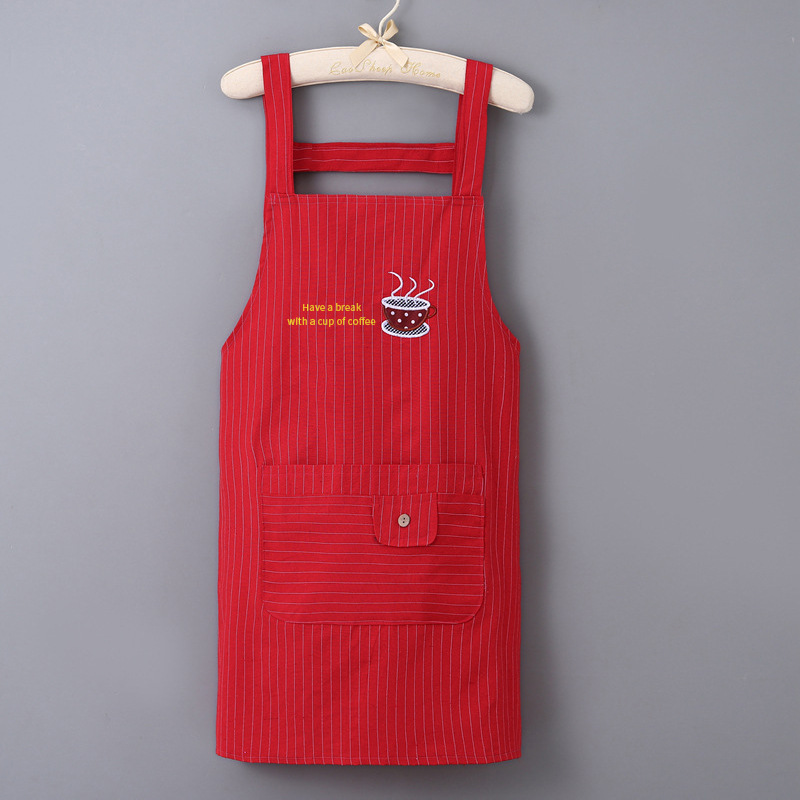 새로운 찻잔 스트랩 앞치마 간단한 현대 요리사 앞치마 기름 방지 오염 방지 소매 자수 앞치마