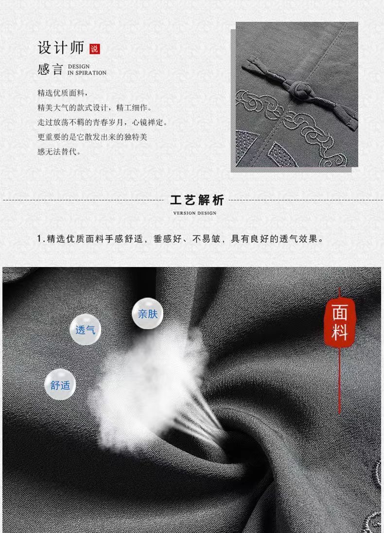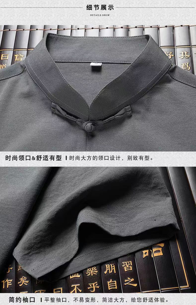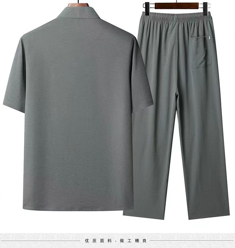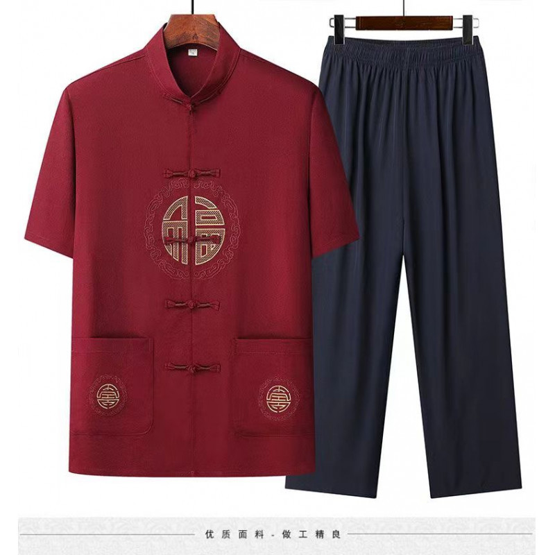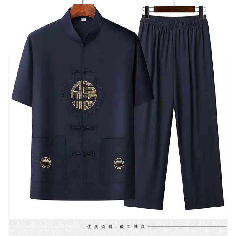 탕 세트 남성 중년 및 노인 여름 반팔 세트 중국 스타일 자수 아빠 캐주얼 루즈 대형 할아버지 얇은 세트