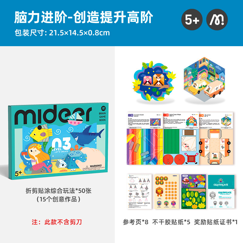중첩 밀루 수제 종이 접기 책 스티커 종이 절단 과학 고급 재료 가방 유치원 DIY 아트 용품
