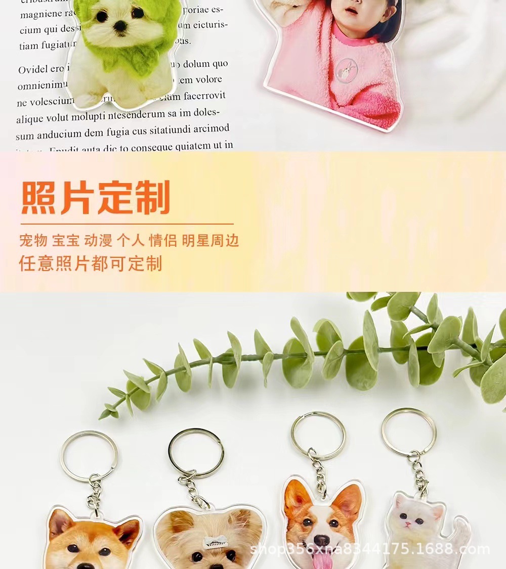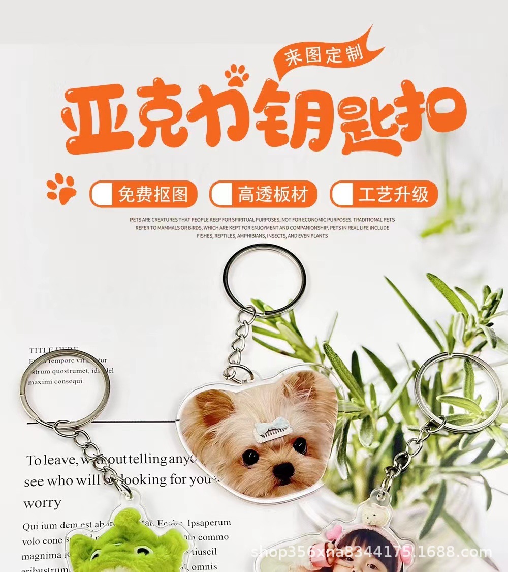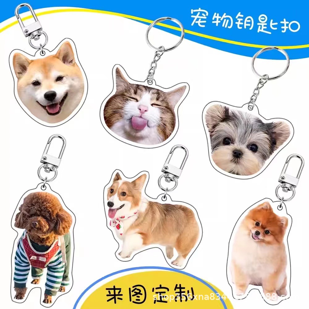 아크릴 애완 동물 키 체인 펜던트 고양이 개 사진 기념품 학생 커플 귀여운 가방 작은 펜던트스토어 가기