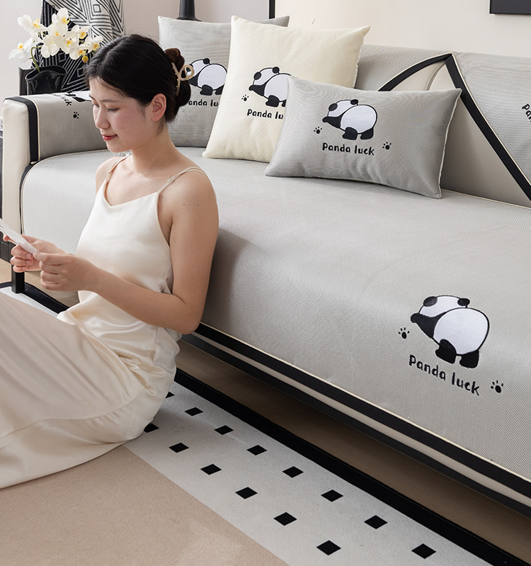 여름 빛 럭셔리 얼음 실크 소파 쿨 쿠션 2025 새로운 수 놓은 멋진 미끄럼 방지 통기성 여름 소파 커버 부드러운 장식